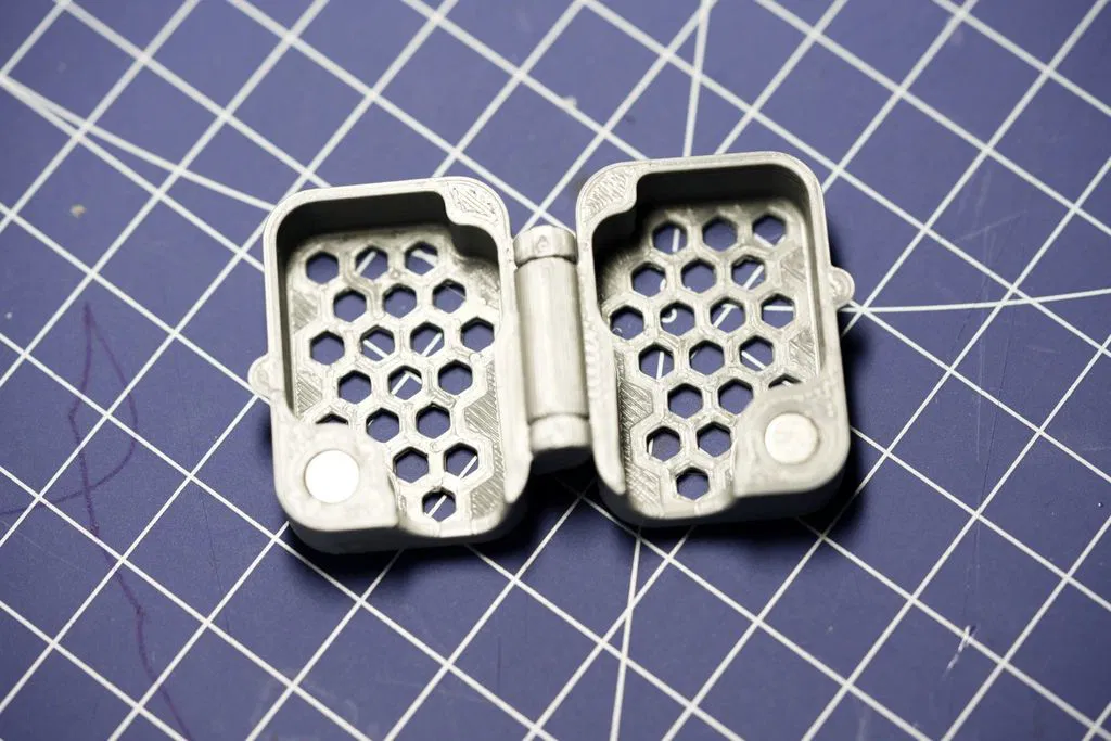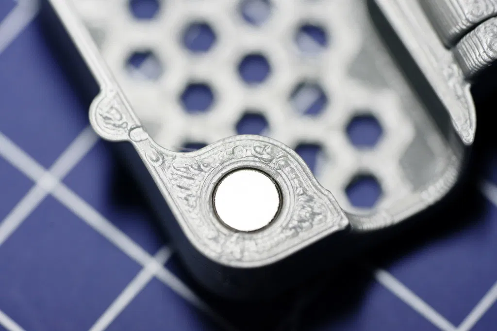 Bên trong có các lỗ để bạn đặt nam châm 5x2mm. Nam châm hơi mạnh so với thiết kế này. Nhưng đó là loại tôi có sẵn. Vì vậy tôi đã thiết kế nắp như vậy. Bạn có thể tùy chỉnh cho kích thước nam châm khác.