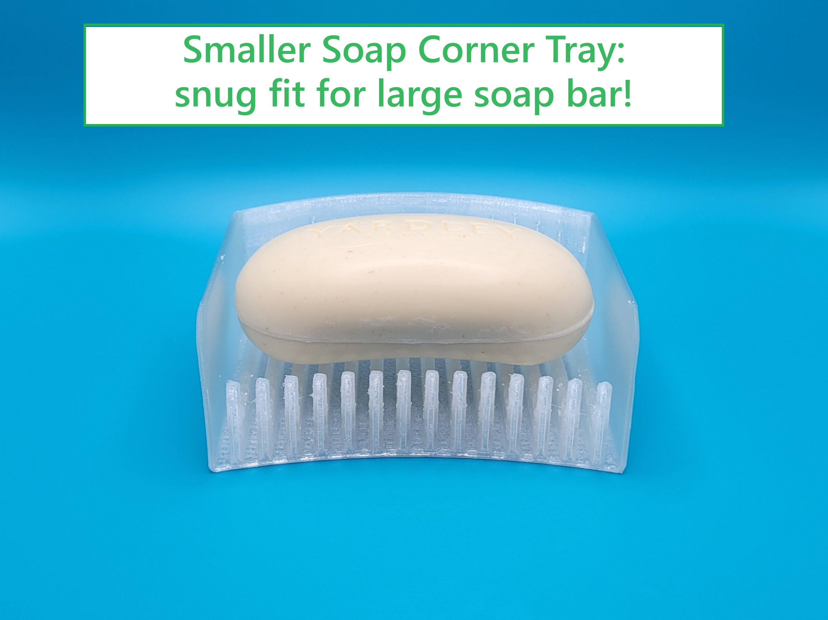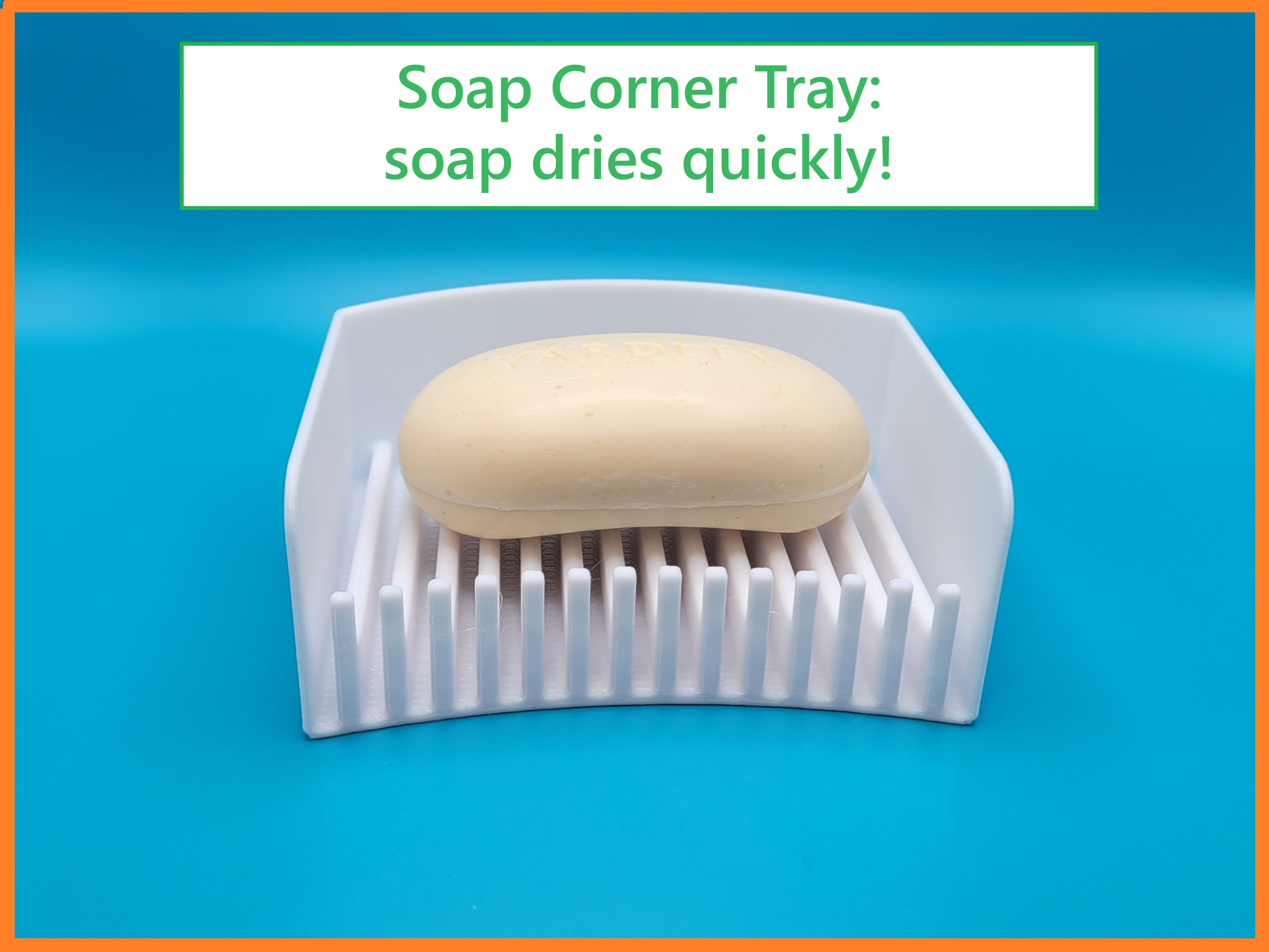 Khay Xà Phòng Góc (hai kích cỡ) này dành cho kệ phòng tắm, giúp thoát nước và giữ xà phòng khô ráo. Có thể in bằng PETG hoặc TPU, không cần hỗ trợ. Đề xuất thêm miếng đệm cao su để chống trượt và tạo khoảng thông khí.