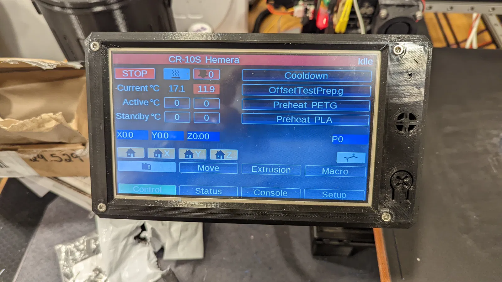 Đây là một mẫu cho vỏ máy, giá đỡ khung, cánh tay gắn và giá đỡ vỏ máy cho PanelDue 7i. Cánh tay gắn dài hơn bình thường để màn hình không cản trở giường di chuyển trên CR-10S đã được sửa đổi của tôi. Vỏ máy không phải là thiết kế của tôi và được lấy từ trang này: https://www.thingiverse.com/thing:2799628