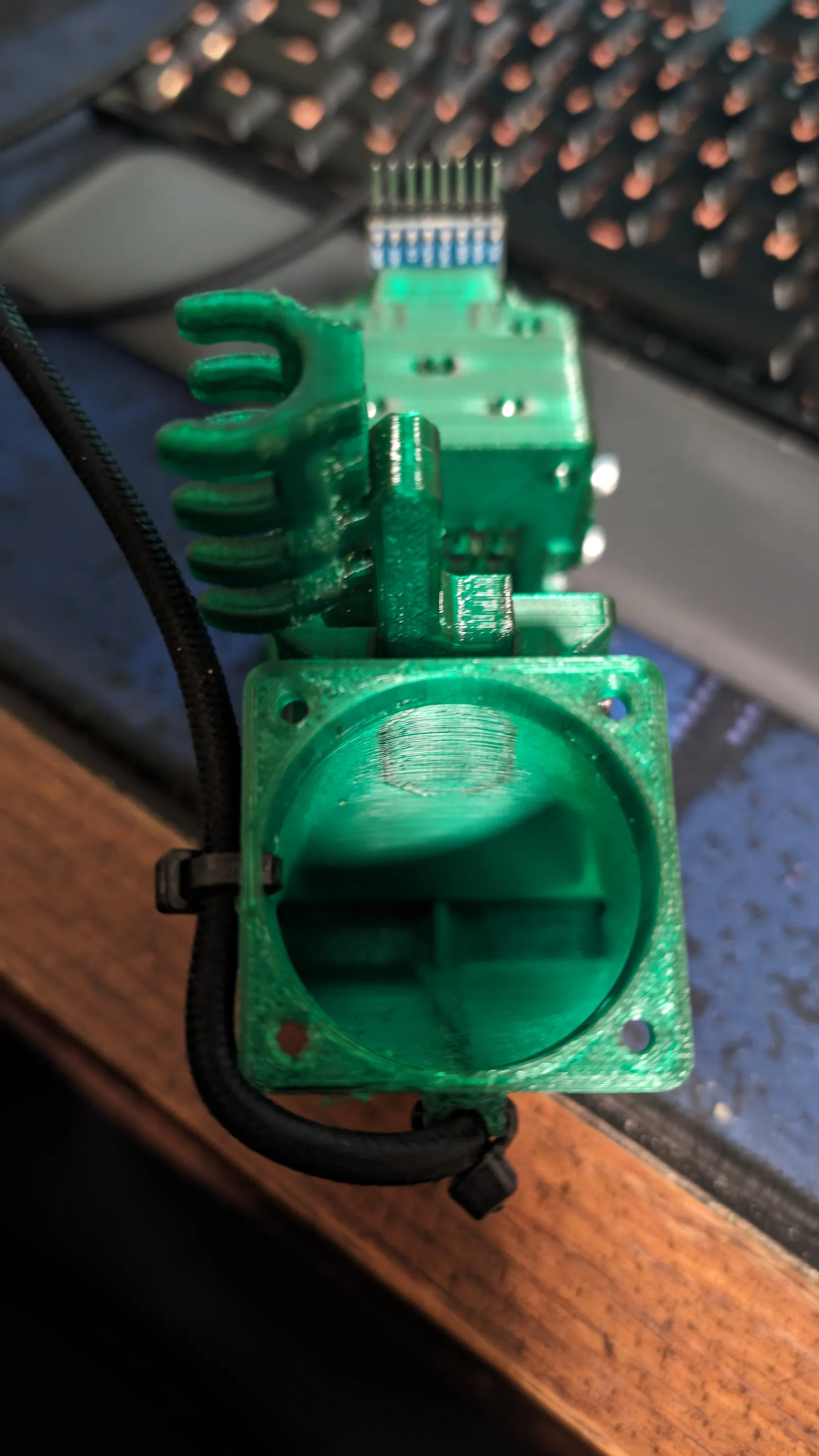 Sửa đổi cửa nạp quạt 40mm cho EVA 3 để tích hợp quản lý cáp cho dây USB của cảm biến Beacon. Cung cấp điểm giữ dây rút giúp giảm căng cáp và định tuyến gọn gàng. Phù hợp với mọi ống dẫn quạt có Beacon.