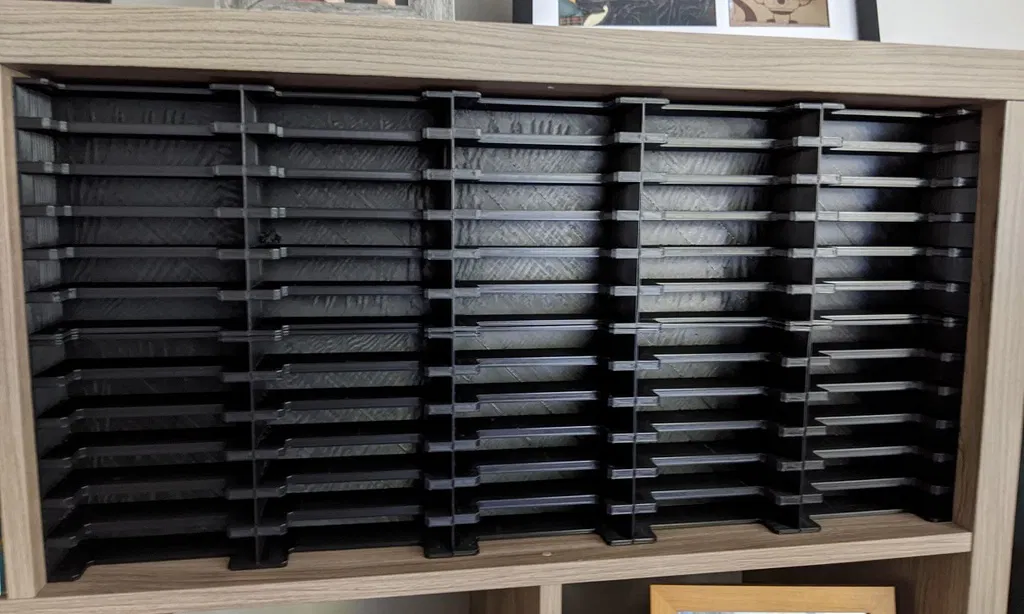 Tạo giá đỡ băng game SNES NTSC cho 60 băng, vừa vặn với kệ IKEA Kallax đã chỉnh sửa. Hướng dẫn chi tiết cách in và lắp ráp các bộ phận "6 Slot", "Dovetail", "Round" để tạo thành một hệ thống lưu trữ hiệu quả, tiết kiệm chi phí, chỉ chưa tới 1$ cho mỗi băng game. Lưu ý các bước chỉnh sửa kệ và cách lắp đặt an toàn.