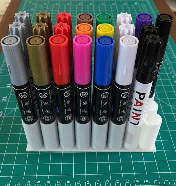 Tui tạo cái "Chân đế bút vẽ (Đế vuông)" này để dọn dẹp bàn làm việc và sắp xếp mấy cây bút màu theo màu cho gọn gàng.