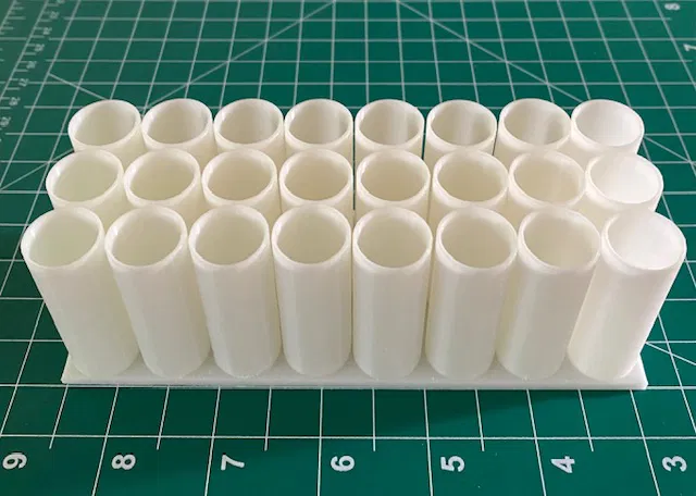 Đế hình chữ nhật đơn giản kích thước 145.5mm x 56mm, cao 2.85mm, với 24 lỗ cắm (đường kính trong 15.5mm, đường kính ngoài 17.5mm, cao 45mm).