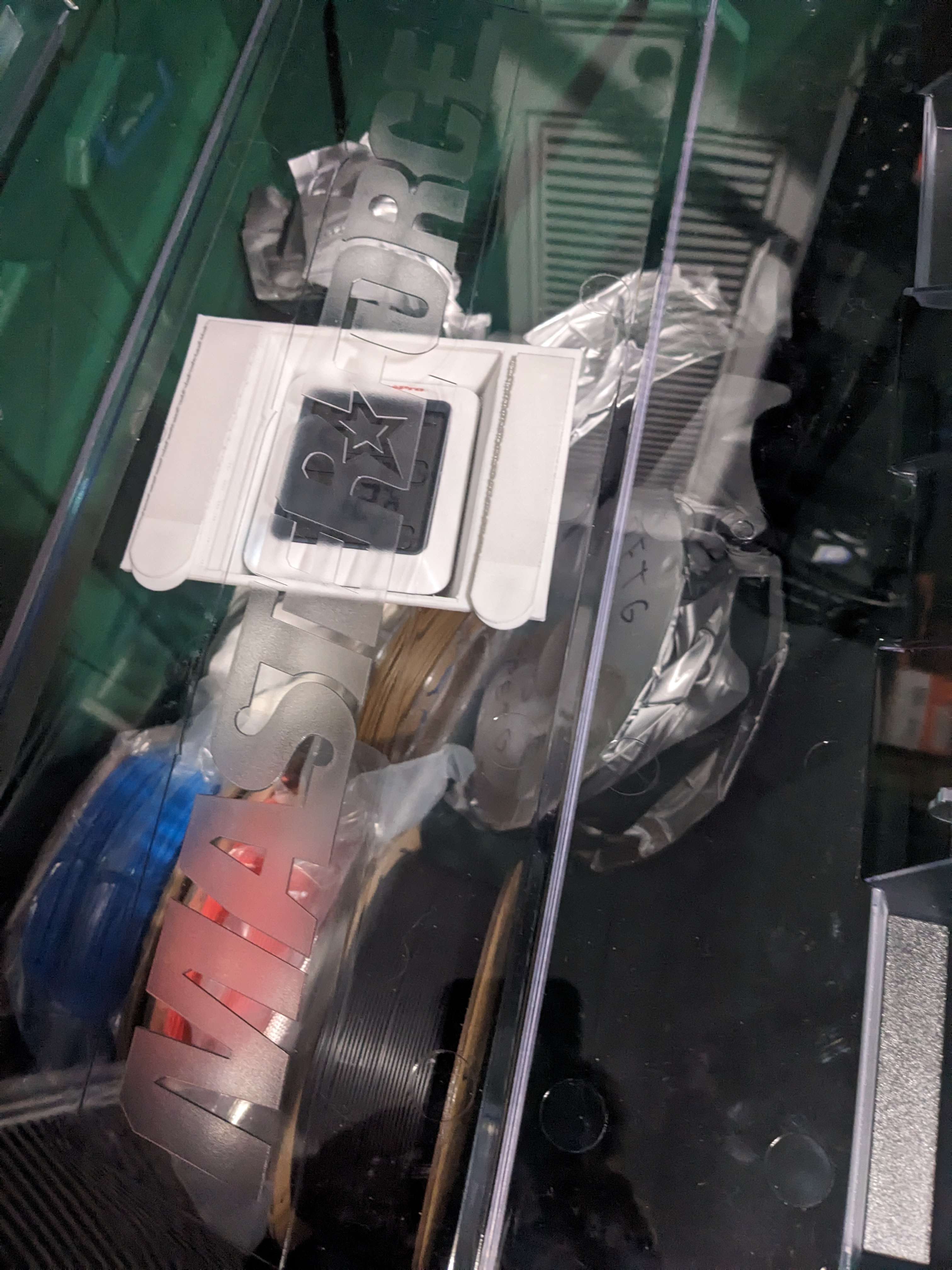 Cái đế nhỏ tui làm để giữ cái ThermoPro TP50 cho cái hộp chống ẩm của tui nè. Tui làm có chỗ để gắn keo dán Command velcro strips để có thể tháo ra khỏi nắp hộp, vì vách hộp không có trong suốt.