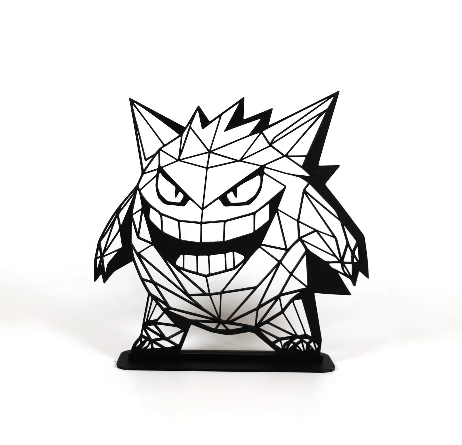 Trưng bày nghệ thuật 2.5D Gengar theo phong cách hình học low poly. Đi kèm đế trưng bày. Hoàn hảo cho fan Pokemon và những người yêu thích phong cách hình học độc đáo.