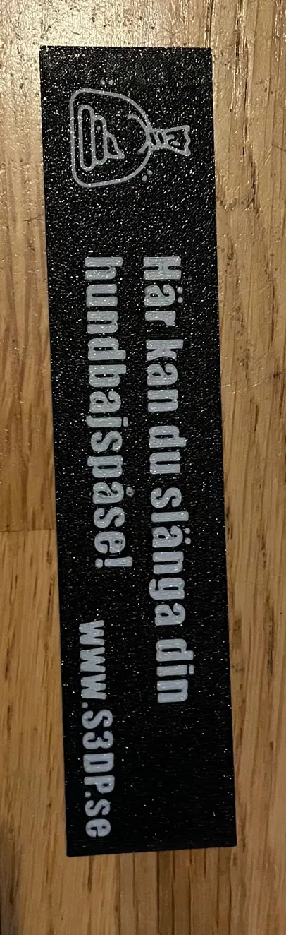 Một tấm biển nhỏ để dán lên thùng rác, thông báo rằng bạn có thể vứt túi rác vào thùng rác nhà mình. Thiết kế này dùng cho AMS với 2 lớp chữ, có thể lật ngược tùy ý. Thích hợp cho người nuôi chó và muốn giữ gìn vệ sinh chung.