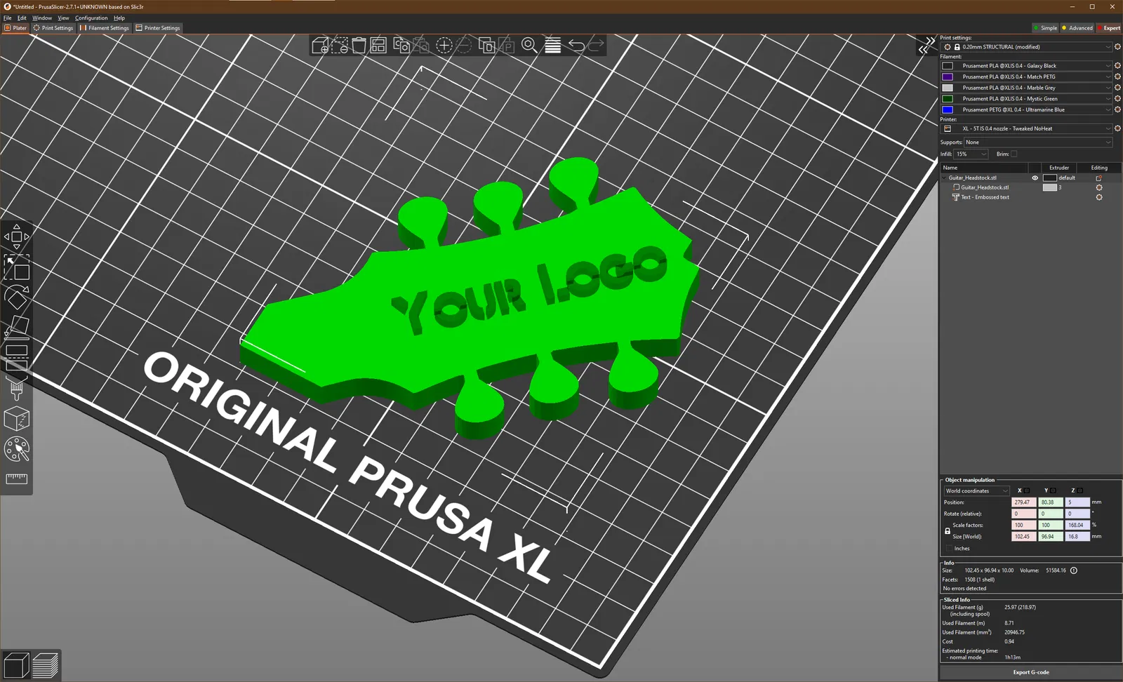 Logo trống cho bạn tự thêm tên qua cắt SVG. Có thể điều chỉnh độ dày và cân nhắc khi cắt xuyên để tránh các bộ phận bị treo. Phù hợp cho các dự án tùy chỉnh đàn guitar.