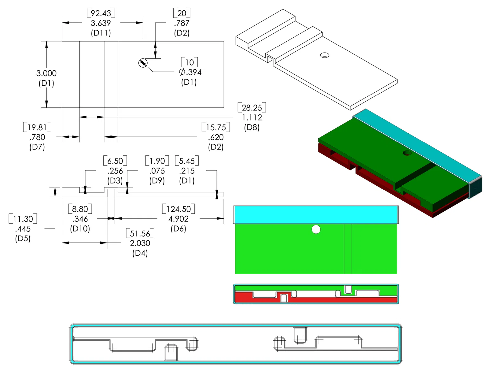 Tui đã thêm mô hình đơn giản hóa của một đoạn ray được sử dụng để tạo ra các nắp đậy cho phép treo ray bằng các lỗ tích hợp sẵn của chúng.