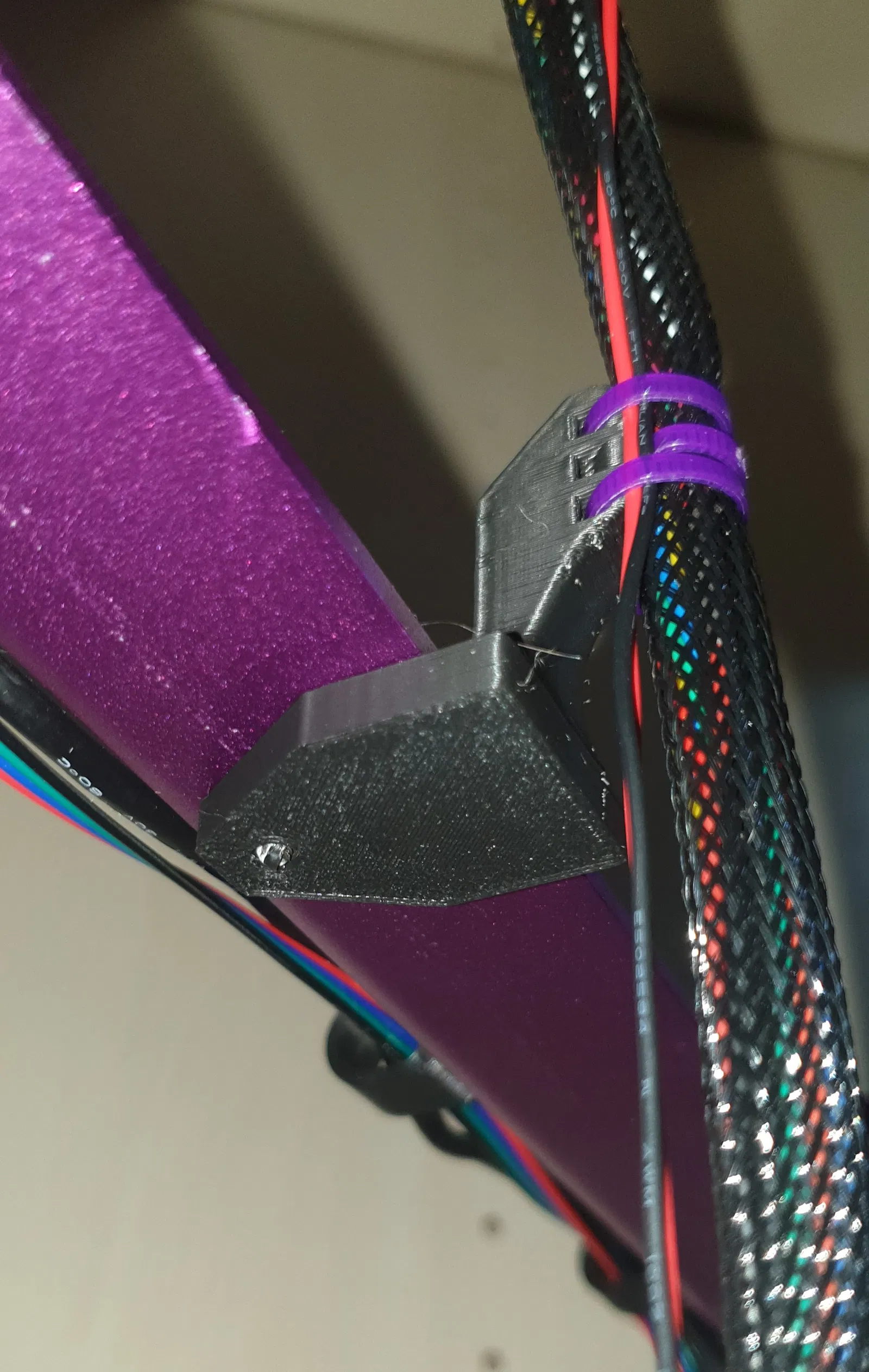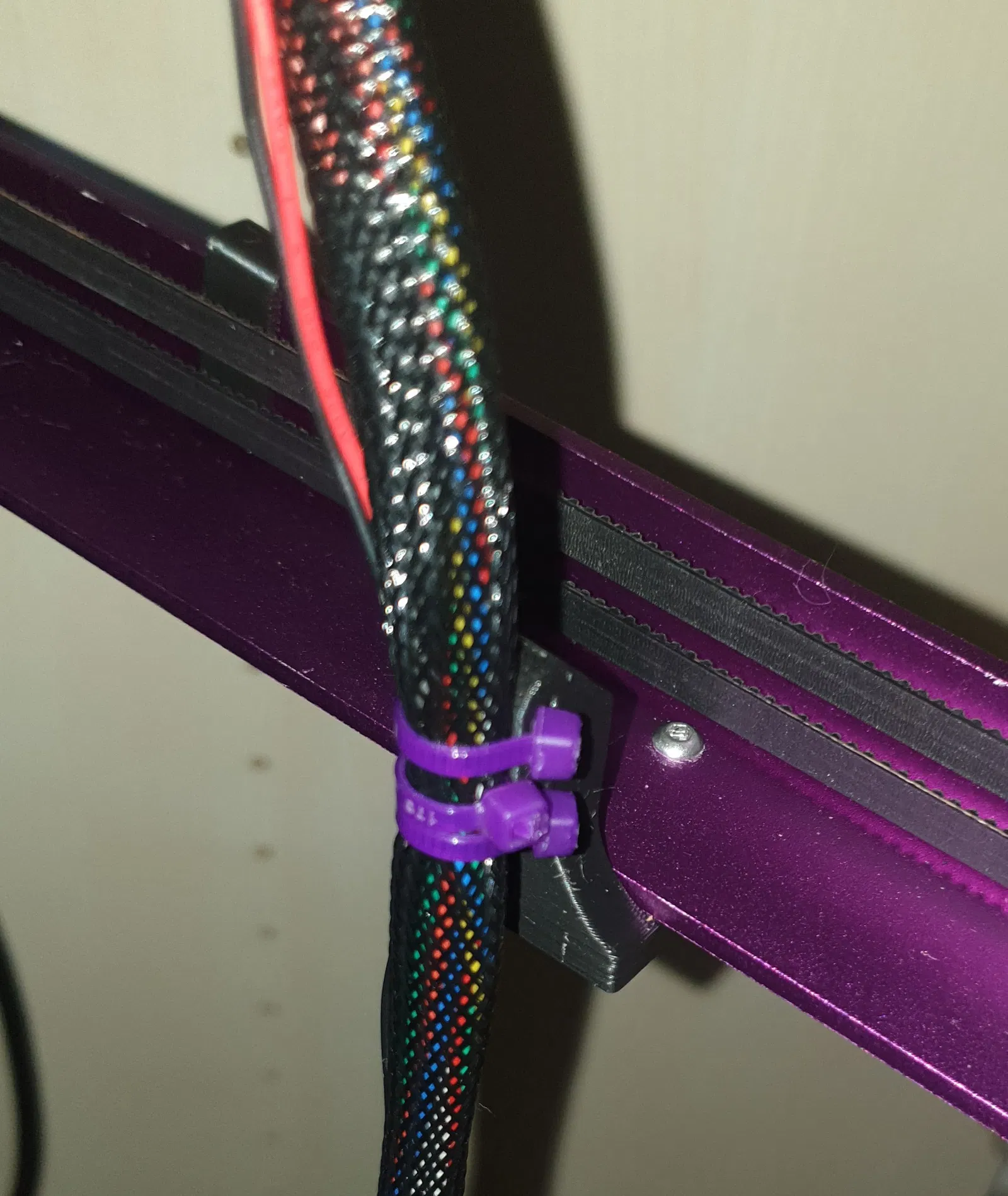 Cái dẫn dây cáp phía sau cho EnderXY, giúp giữ dây cáp của đầu in thẳng đứng ở phía sau. Có thể cần chống đỡ tùy thuộc vào hệ thống làm mát. Cần phần cứng bao gồm ren cấy M3 và vít M3, cùng với dây rút cáp.