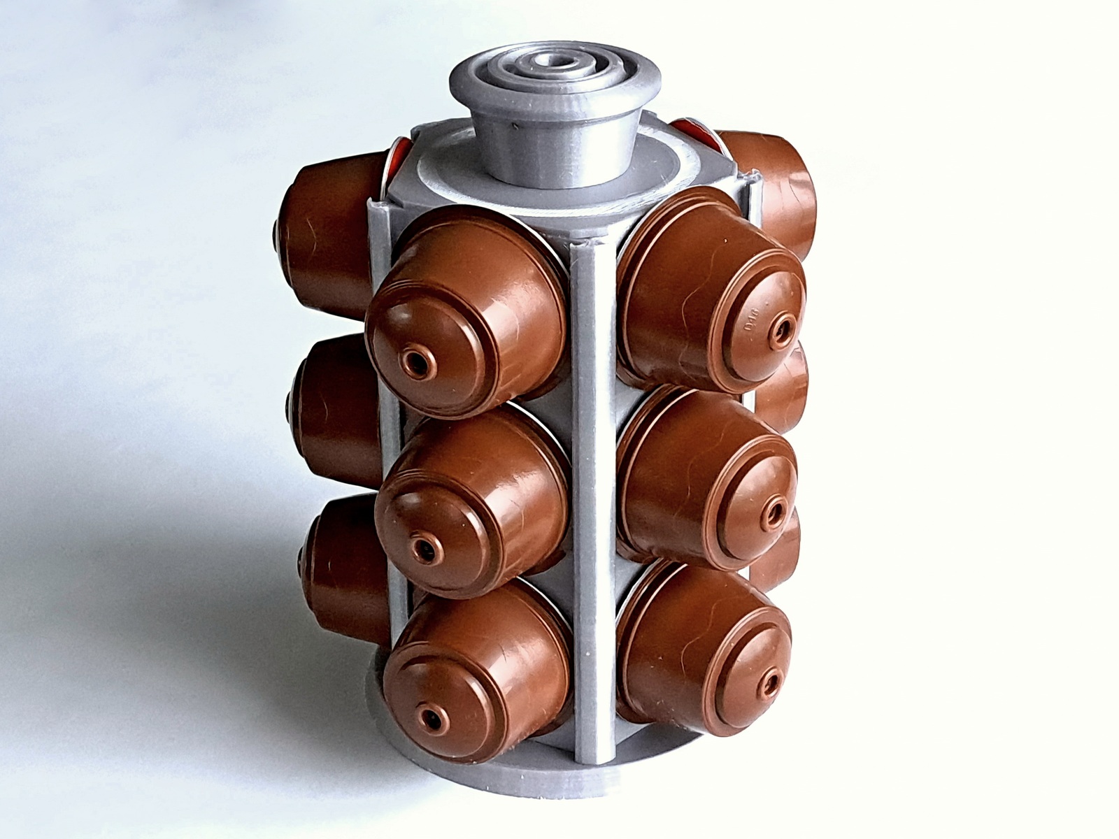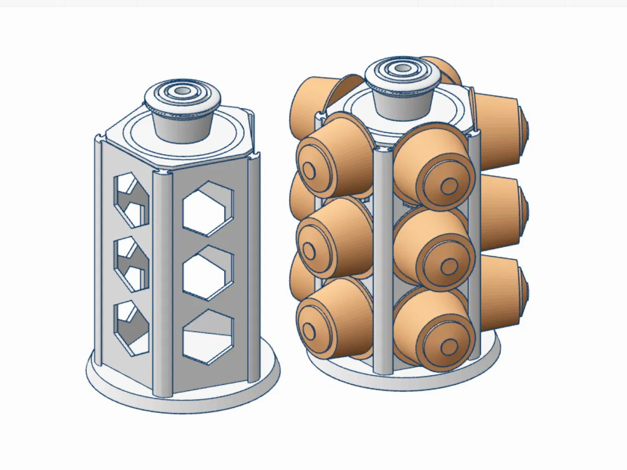 Giá đỡ viên nang cà phê Nescafé Dolce Gusto, đựng được 15 viên. Mẫu in 3D này dễ lắp ráp, không cần support, chỉ cần vài chi tiết nhỏ như bu lông và đai ốc M6 để hoàn thiện. Thích hợp cho người dùng PRUSA Mini và sợi PLA.