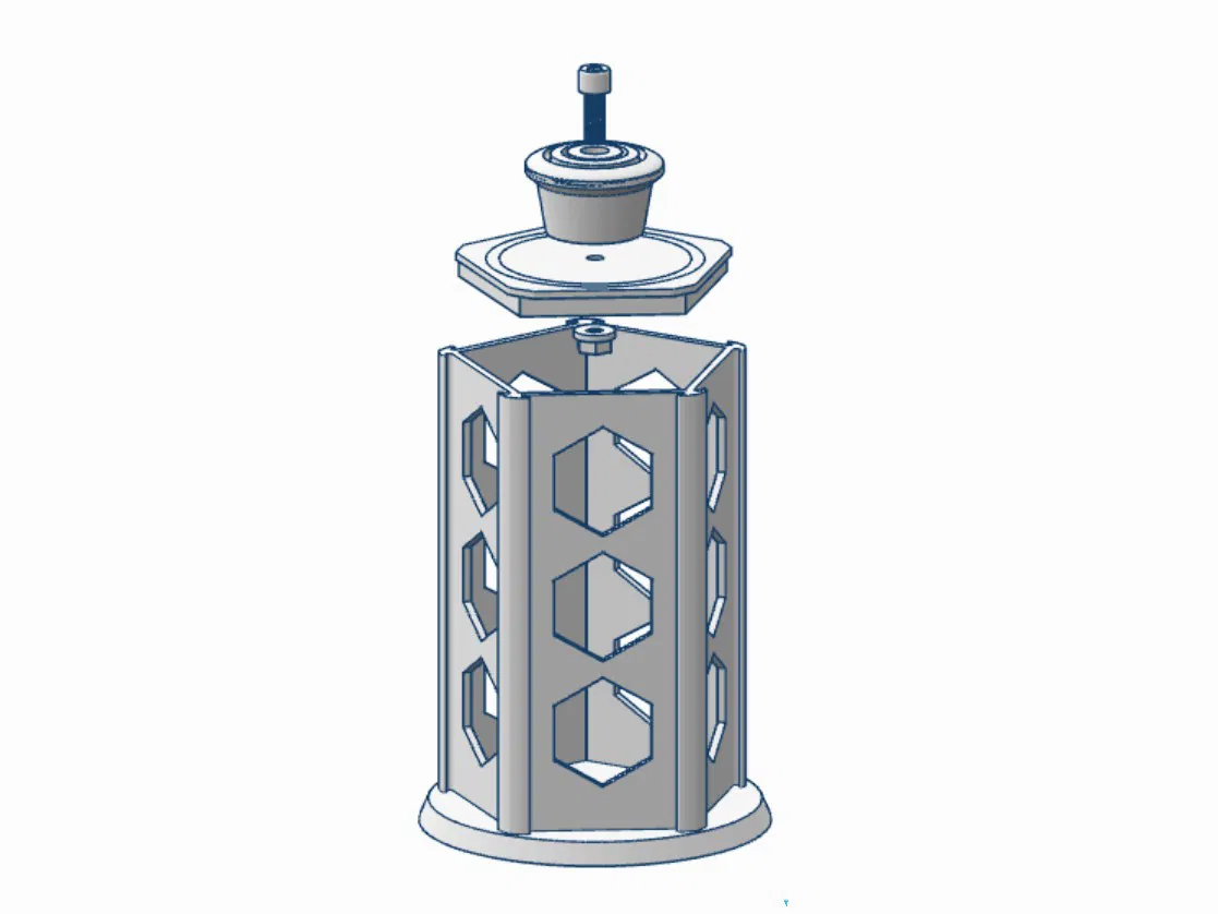 The Handle gắn với Top Cap bằng bu lông lục giác M6, dài 16 mm, và một đai ốc M6. Có thể in hoặc dùng kim loại.
