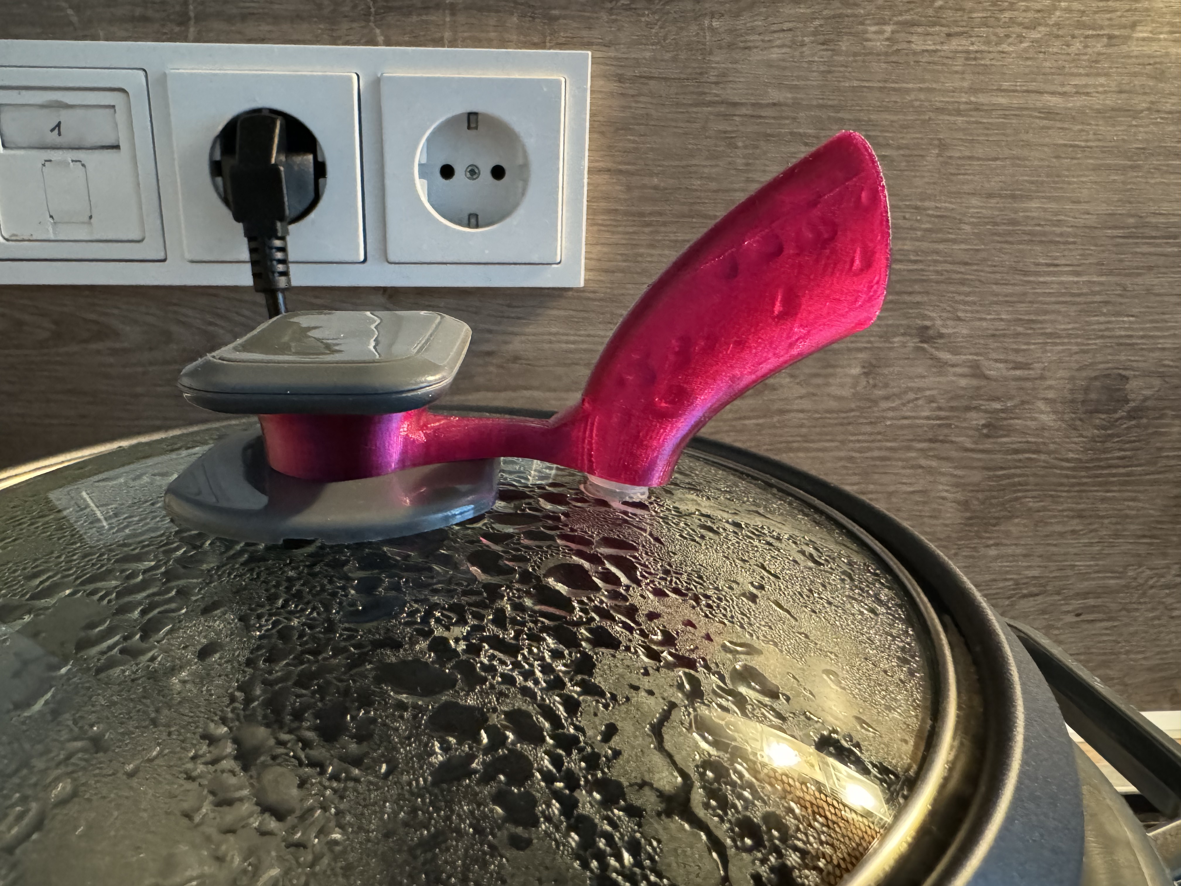 Mẫu này là vòi xả hơi cho Nồi Cơm Điện Russell Hobbs 27040-56, giúp đổi hướng luồng hơi nước ra bên hông để thoát tốt hơn. Phần này phải in bằng PETG chịu nhiệt. Có thể dùng khí nóng bẻ cong cánh tay nối để chỉnh hướng xả.