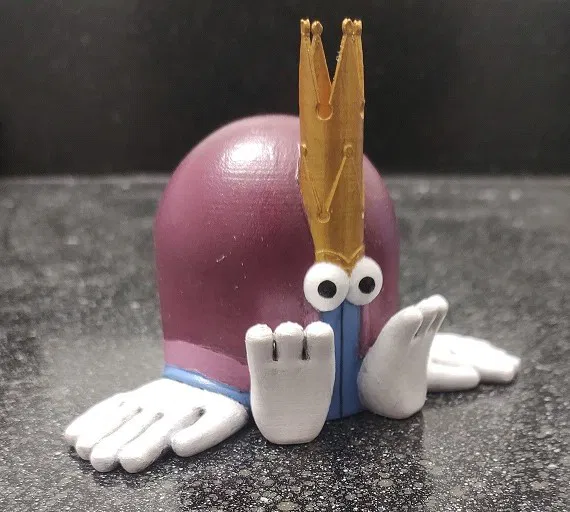 Vua Hai Lần (The Double King) từ phim hoạt hình của Felix Colgrave giờ có thể ngồi trên bàn làm việc của bạn và thống trị muôn loài. Mô hình có hai vương miện và đôi tay khổng lồ. Chỉ cần support phần mắt, các phần còn lại in dễ dàng. Tùy chỉnh độ dày thành và độ đặc ruột theo ý thích.