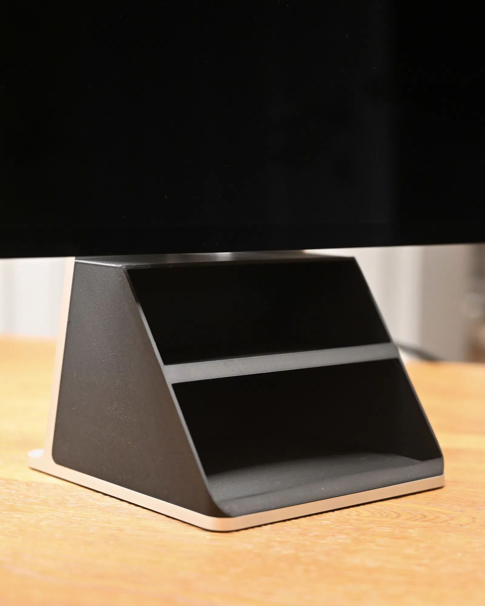 Khay đựng đồ cho Apple Studio Display. Tận dụng không gian chưa sử dụng trên chân đế. Vừa vặn hoàn hảo. Chúc bạn in vui vẻ.
