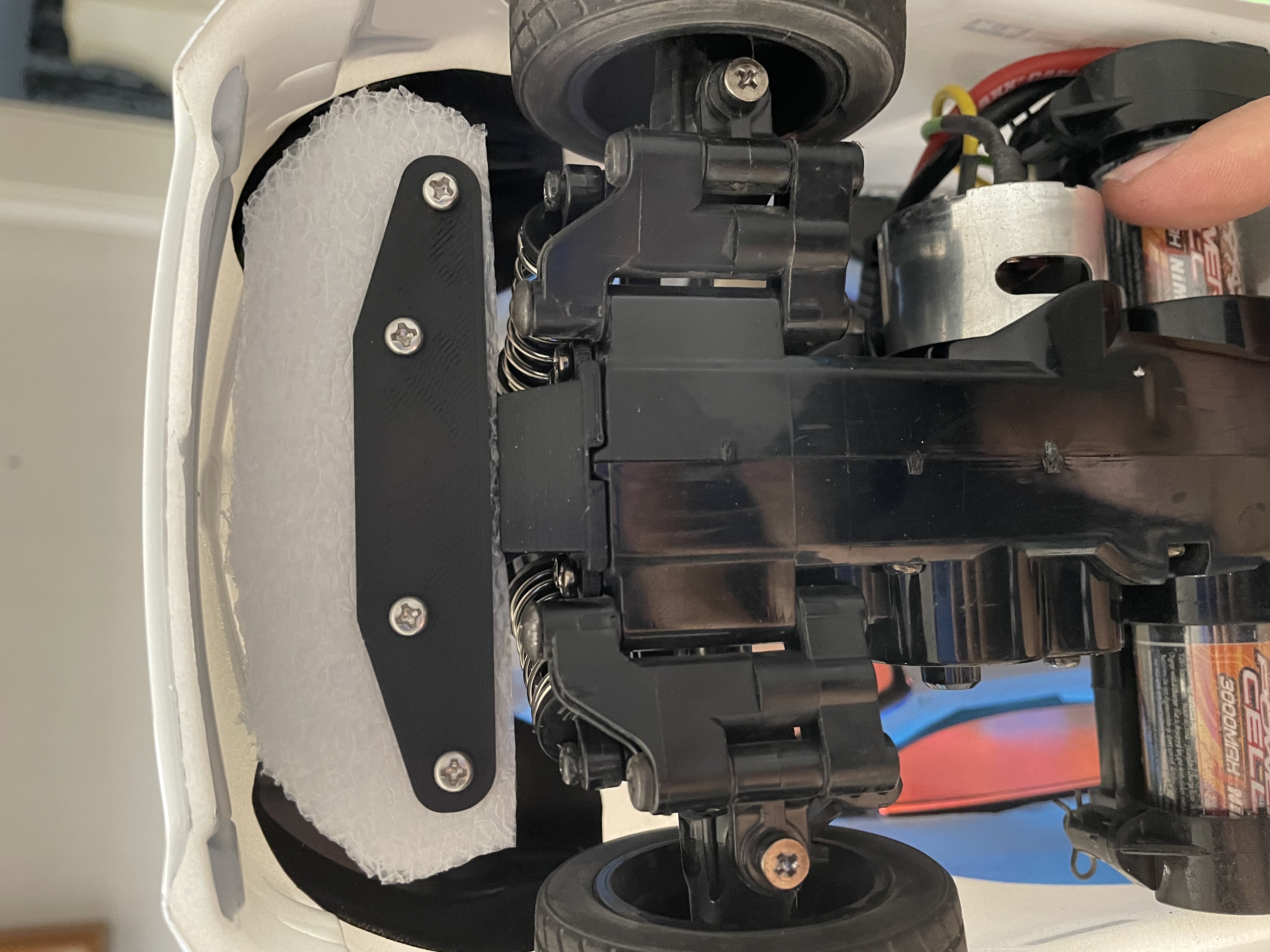 Để bảo vệ thân xe Tamiya M-05 Toyota Yaris GR RC của mình, tôi đã tạo ra bộ lắp ráp cản trước này để giữ một miếng xốp làm cản, giống như loại dùng cho TT-02.