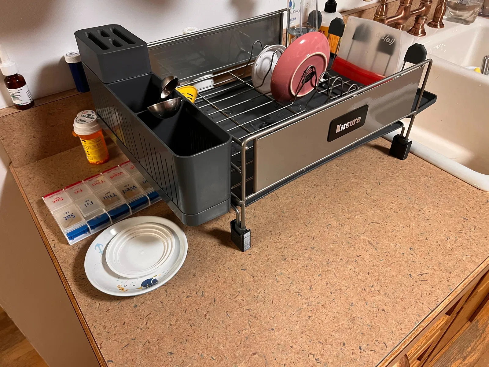 Cái này là một mẫu in 3D nhanh mà tui làm để nâng/kê cái kệ úp chén của Kitsure lên cao hơn một chút khi đặt trên bồn rửa chén âm. Thiết kế ban đầu của kệ úp chén Kitsure giả định bồn rửa chén của bạn là loại âm hoặc bằng mặt phẳng nó đặt lên. Trong trường hợp của tui - như trong hình - tui có bồn rửa chén loại có gờ nổi lên khoảng 12mm. Cái mẫu này sẽ nâng kệ Kitsure lên 15mm để vượt qua cái gờ đó và có lẽ sẽ xài được cho hầu hết các loại bồn rửa chén có gờ nổi.