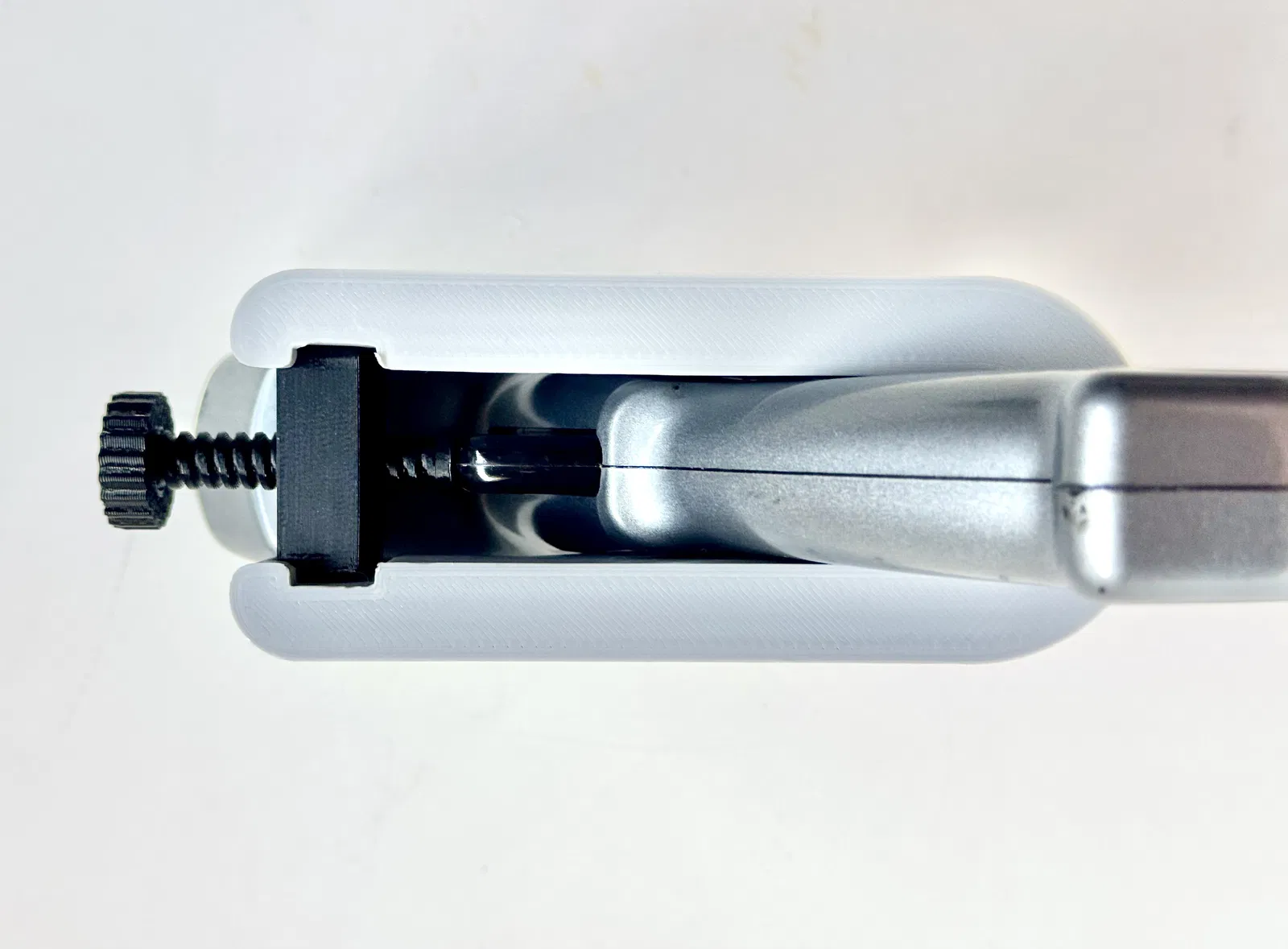Đây là một cái kẹp và ốc đơn giản, vừa với hình dạng không hề đơn giản của Tay cầm Scalextric Digital, để bạn có thể giữ và điều chỉnh vị trí ga để cho xe chạy trên đường đua của bạn mà không cần người trông coi.
