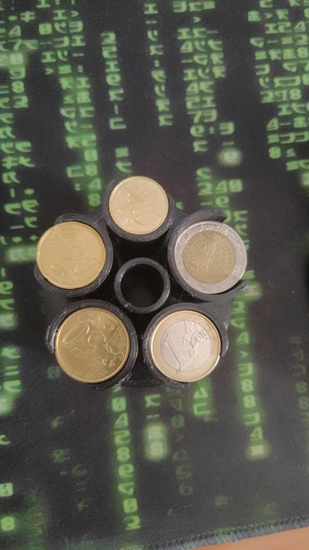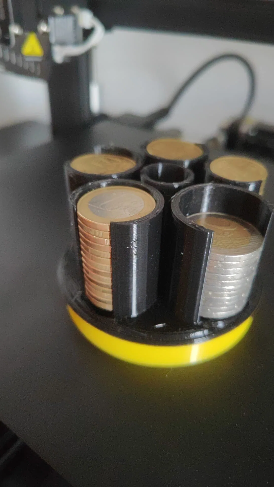 Và tui quyết định thiết kế một cái ví đựng tiền xu euro, để bàn, cho các loại 2€, 1€, 50c, 20c và 10c. Tui in bằng PLA màu đen của BQ và nó ra ngon lành lần đầu tiên. Hy vọng nó giúp ích cho mọi người nha.