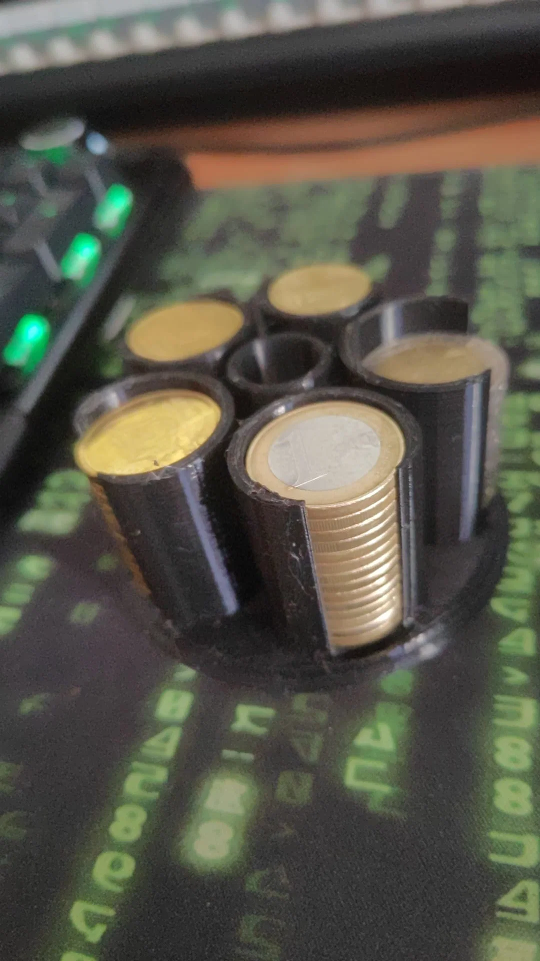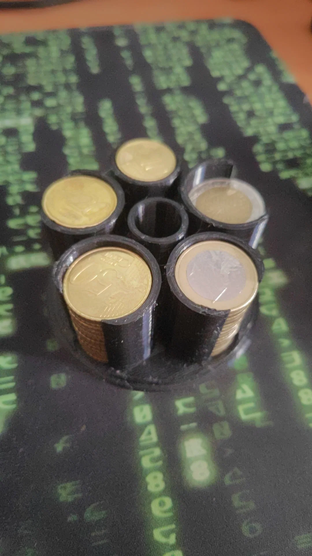 Cần sắp xếp tiền xu euro trên bàn làm việc, nên tui đã thiết kế hộp đựng tiền xu euro để bàn. Hộp này có chỗ cho các loại tiền 2€, 1€, 50c, 20c và 10c. In bằng PLA màu đen BQ, ra ngay lần đầu. Hy vọng sẽ giúp ích cho mọi người.