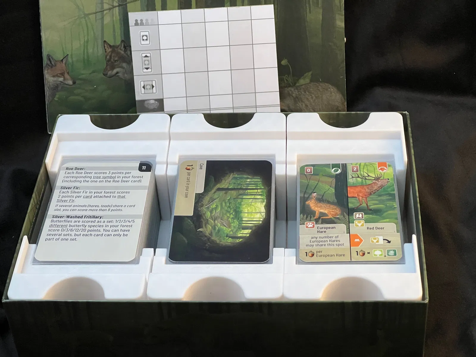 Hộp đựng bài Forest Shuffle hỗ trợ loại sleeve titanshield chuẩn Mỹ. Các khay đựng bài cũng có thể tháo rời và nên in dễ dàng hơn trên các máy in nhỏ hơn.