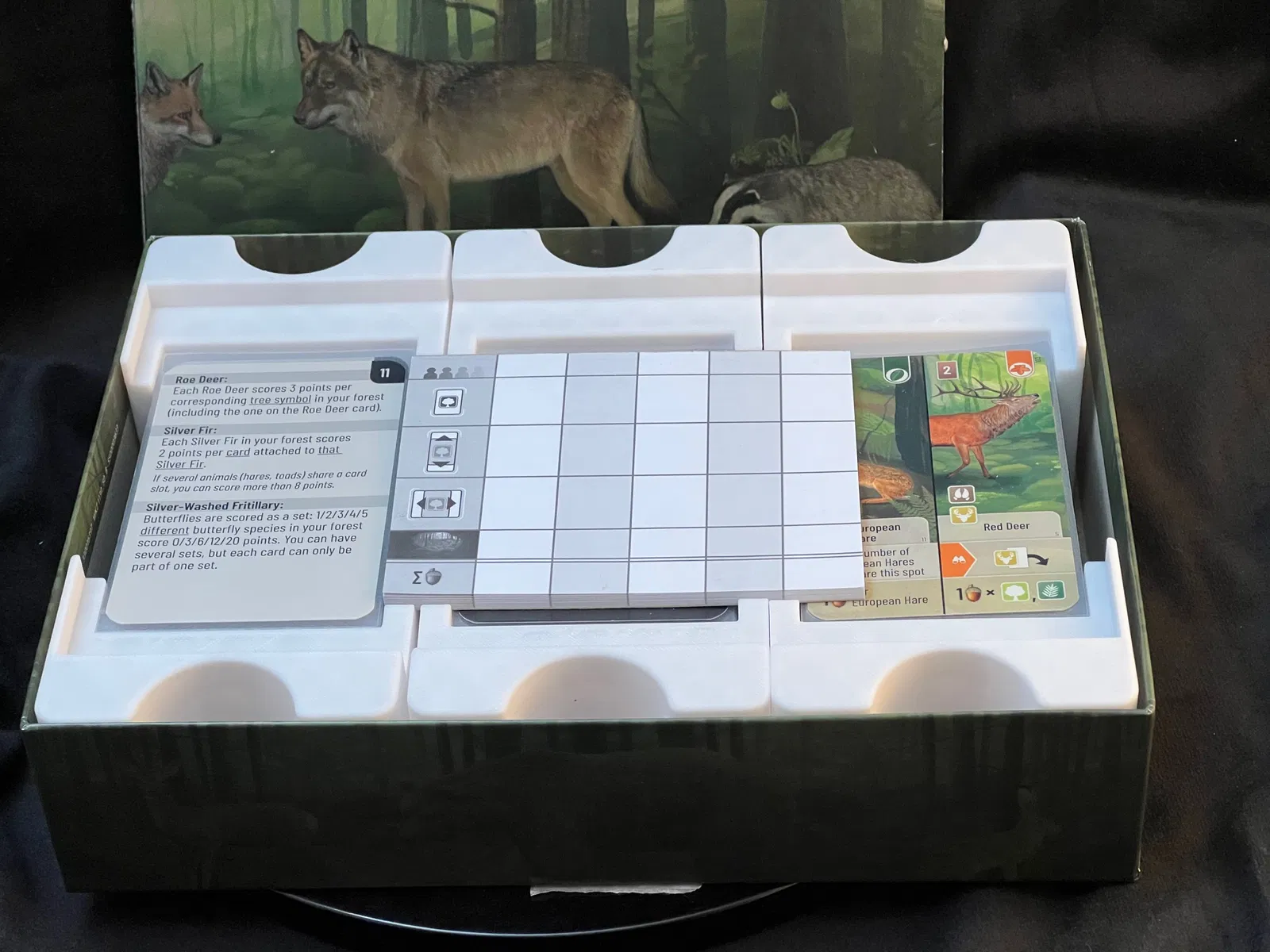 Hộp đựng bài Forest Shuffle cho game board, hỗ trợ loại sleeve titanshield chuẩn Mỹ. Các khay có thể tháo rời, dễ in trên máy in nhỏ. Vừa vặn, ôm sát và đựng được cả phiếu điểm.