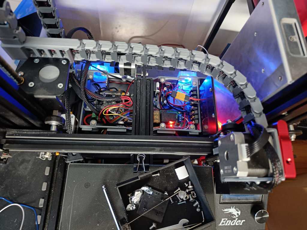 Cái này cũng khắc phục vụ việc nó bị cạ sát vô cái khung nhôm của extruder luôn.
