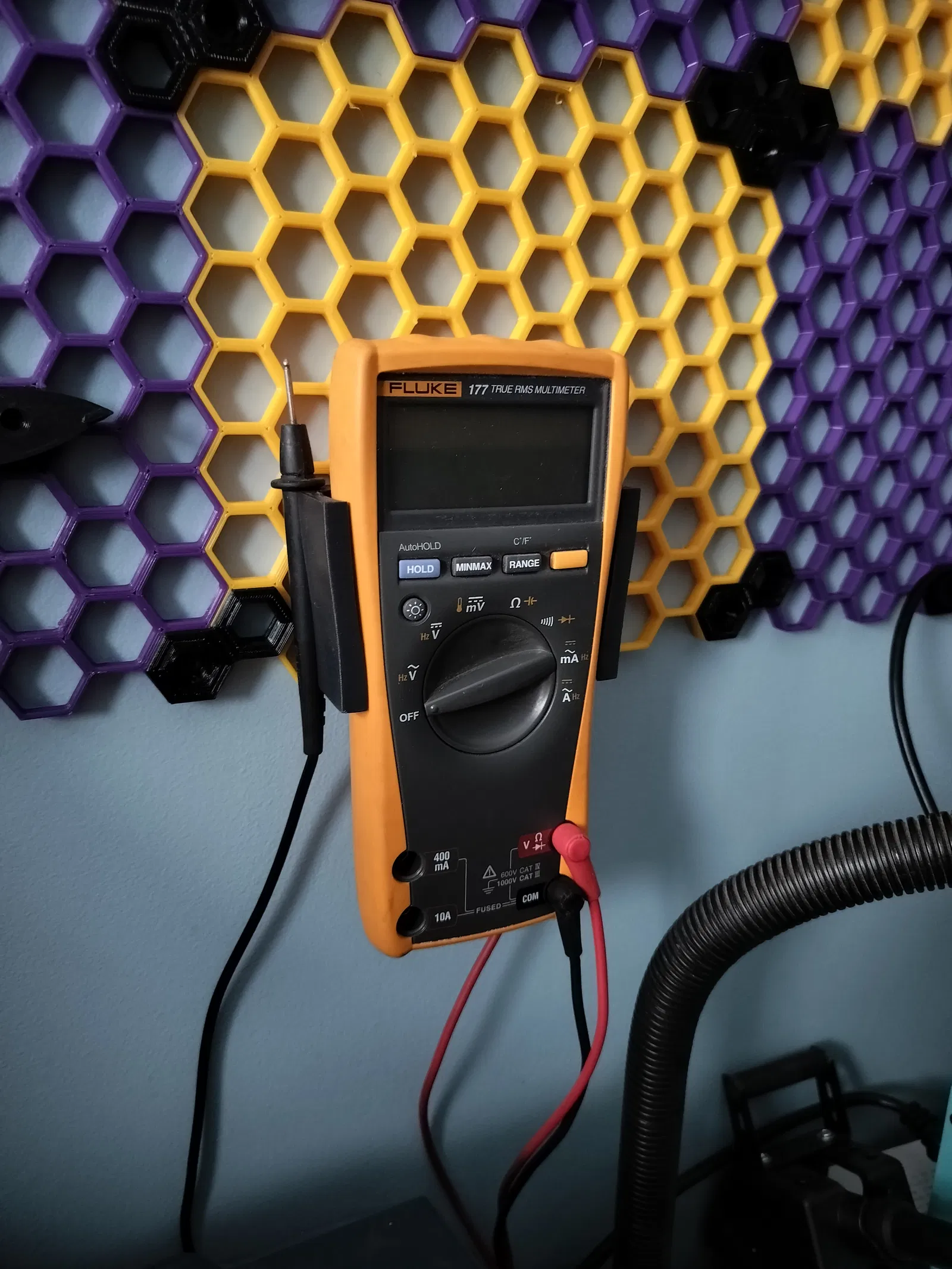 Sau khi xây dựng một Honeycomb Storage Wall (HSW), tui quyết định muốn treo hết mấy cái dây nối với đồ điện tử lên tường, bao gồm cả cái Đồng hồ vạn năng Fluke 177 (DMM) của tui.