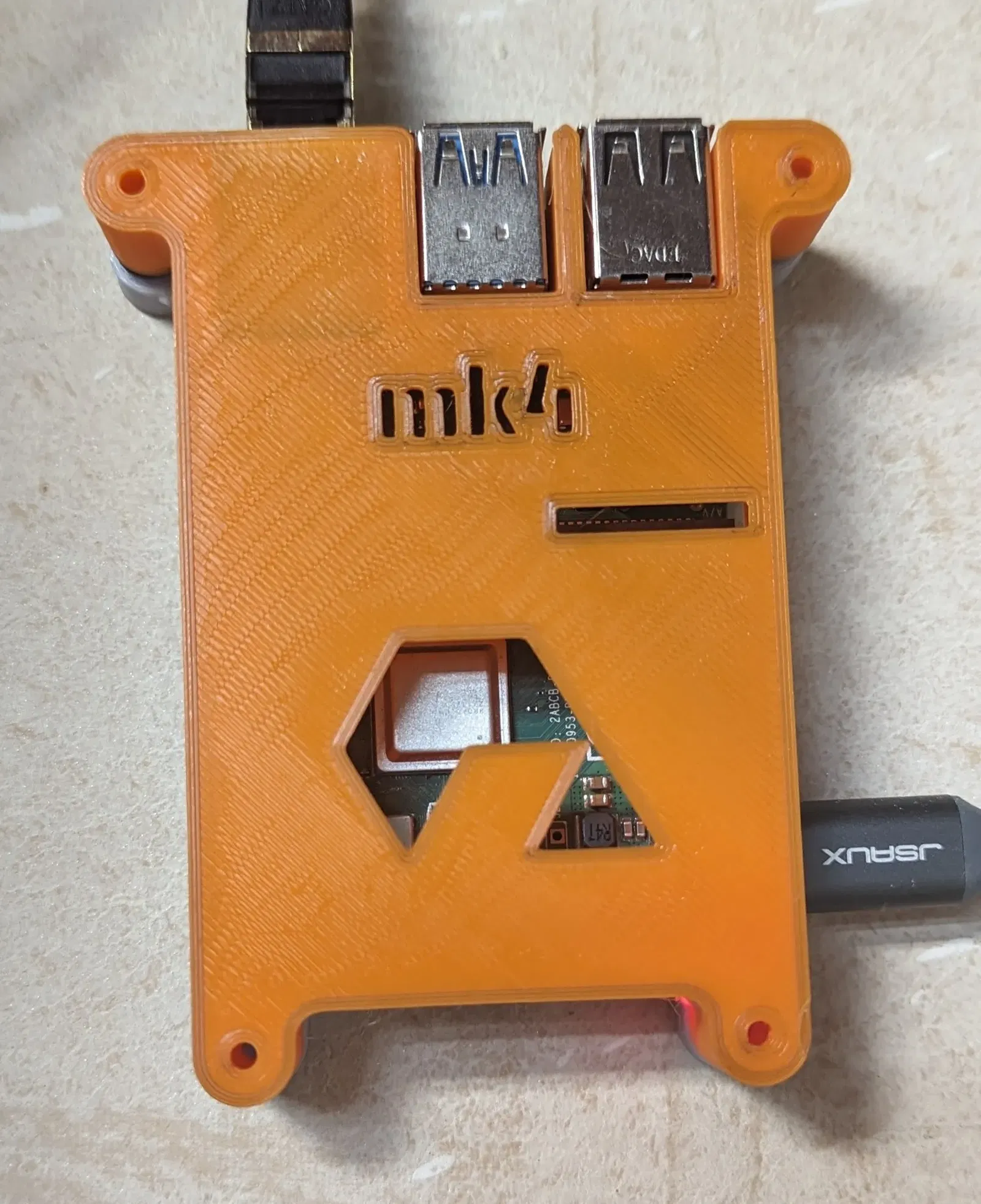 Vỏ 2 phần cho Raspberry Pi 3 B+ ra mắt cuối năm 2017, Raspberry Pi 3 A+ ra mắt năm 2018, hoặc Pi 4 B ra mắt năm 2019. Gắn Pi vào đáy bằng vít 2mm. Gắn phần trên vào đáy bằng vít 3mm. Gắn vào bề mặt bằng vít 4mm (hoặc tương đương - vít drywall rất hiệu quả) hoặc băng dính gắn.