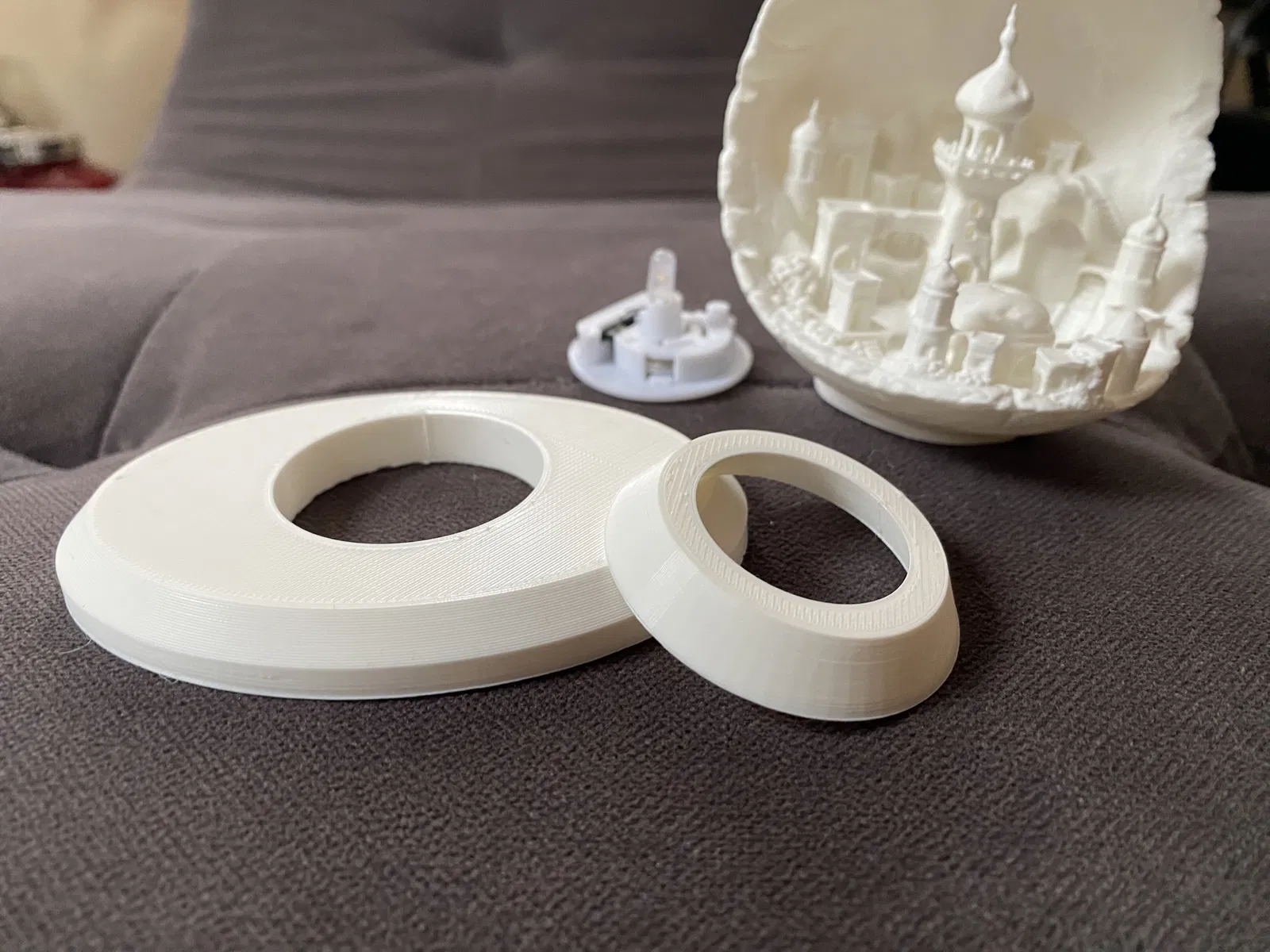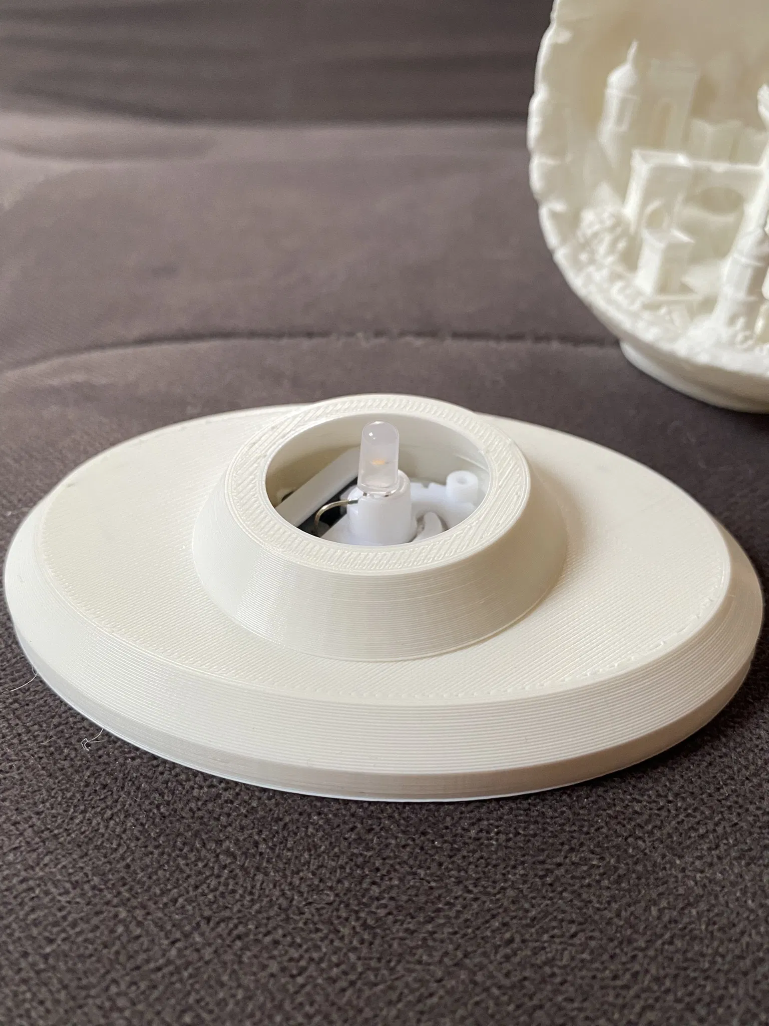 Chân đế cho bộ phận bên trong có đèn LED nến cho Mooncity, thu nhỏ 65%. Chân đế lớn là bản phối lại từ một người làm mô hình khác. Chỉ cần dán các bộ phận lại với nhau, hoặc phối lại và thêm nam châm. Bộ phận một (chân đế lớn) là từ người làm mô hình khác: https://www.f3d.vn/3d-model/158936-de-lot-ly-cho-moon-city-20 Anh ấy cũng có làm một cái có lỗ âm, nên bạn có thể xem thêm trên trang của anh ấy nha.