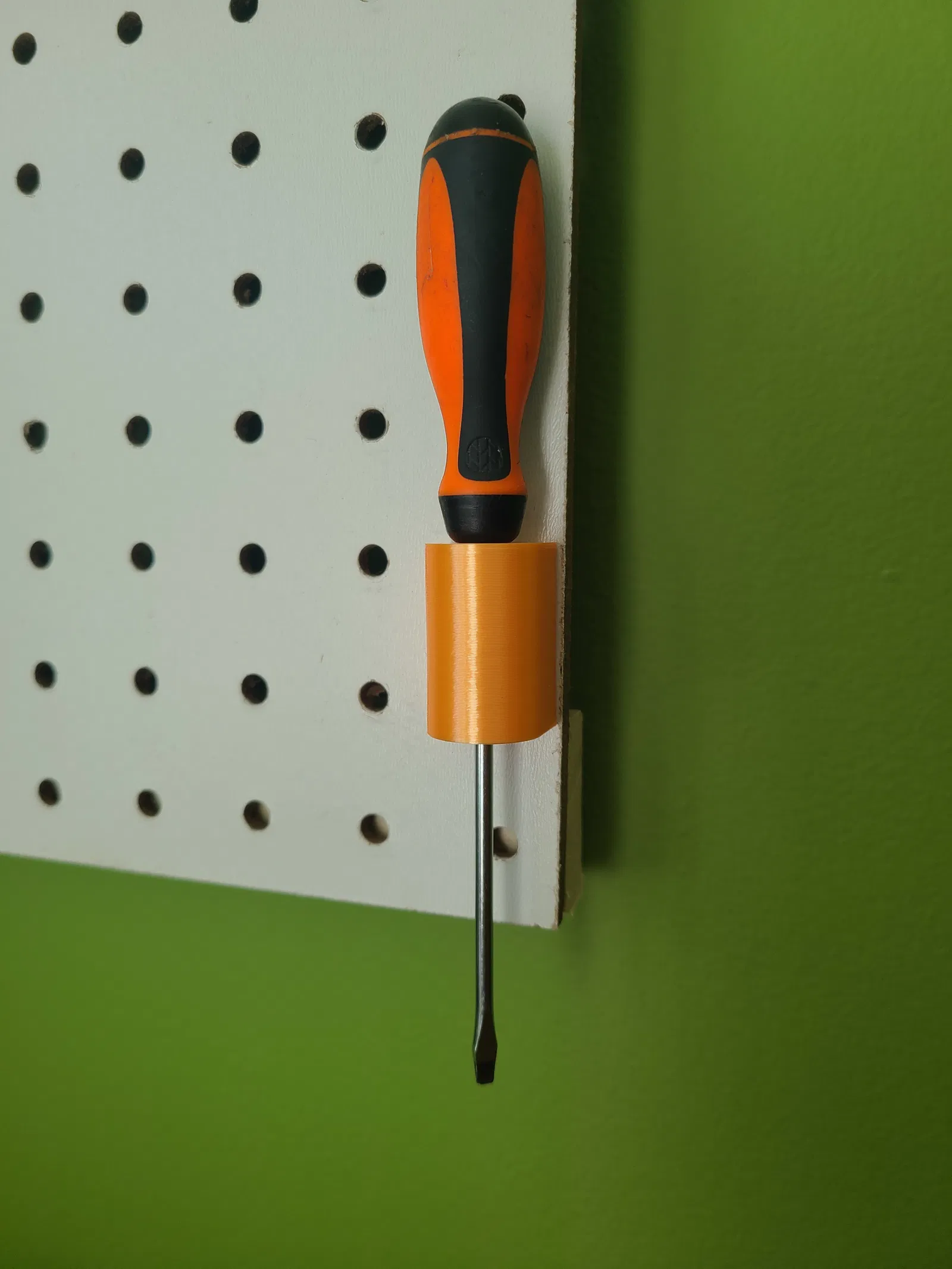 Cái đế nhỏ này để treo tua vít lên bảng pegboard.