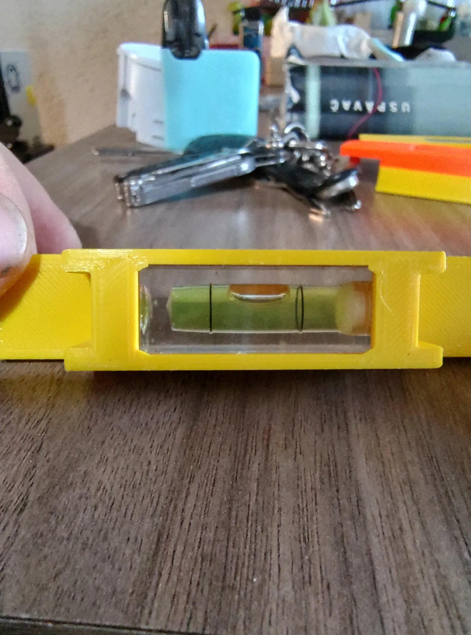 Thước thủy điện KP68, kích thước 15mm x 15mm x 40mm, có móc chìa khóa tiện lợi, phù hợp cho thợ điện.