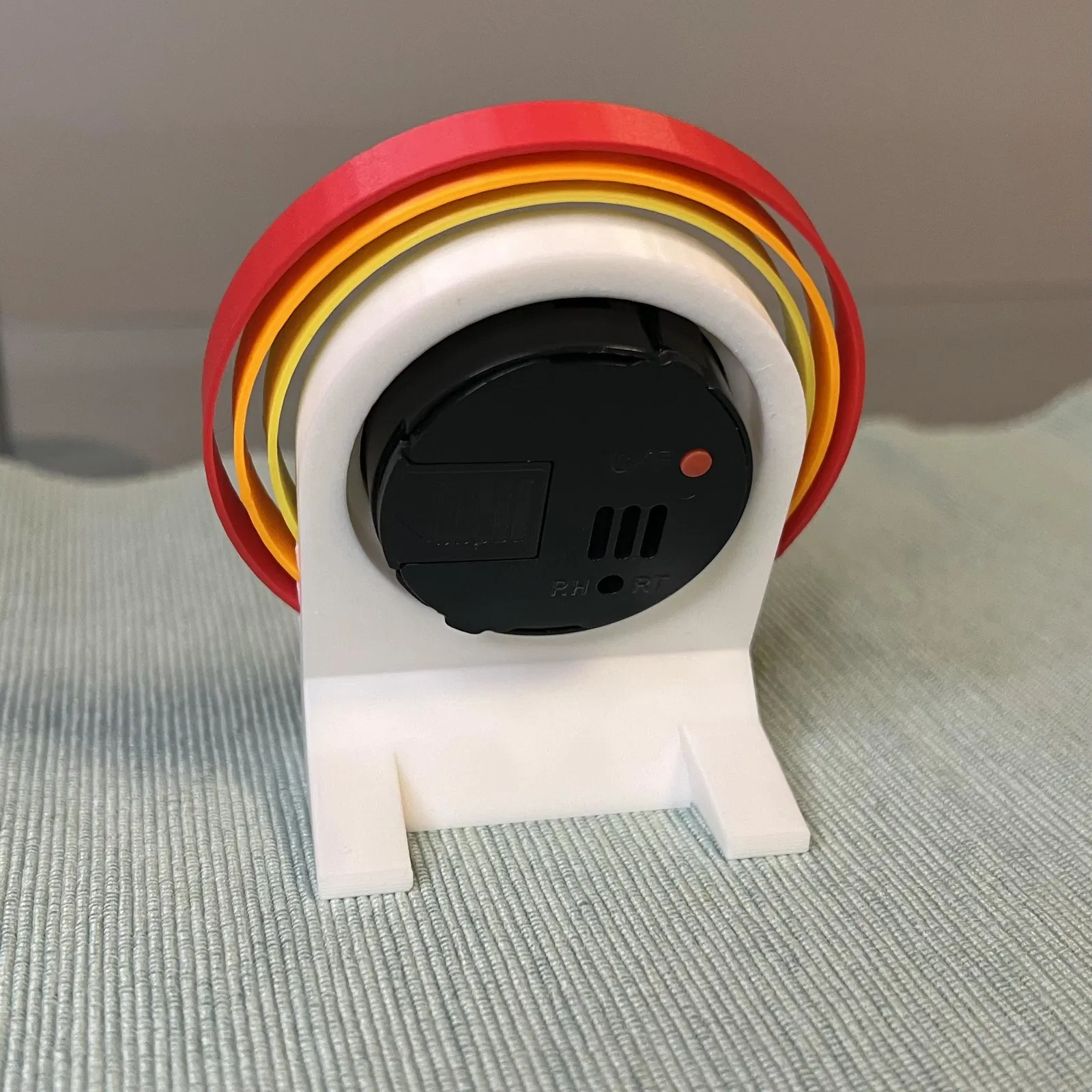 Giá đỡ máy đo độ ẩm đơn giản, dễ in, có các vòng tròn nhiều màu sắc. Không cần AMS/MMU, không cần vật liệu hỗ trợ. Vừa vặn với các module giá rẻ, dễ thay thế. In bằng ASA/ABS/PETG nếu dùng ngoài trời.