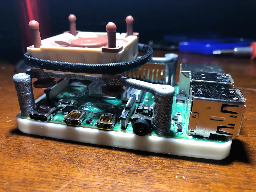 Thiết kế giá đỡ quạt đơn giản cho Raspberry Pi 2/3/4, dễ dàng gắn quạt 40mm Noctua, giữ nhiệt độ máy ổn định. Tặng kèm file Fusion360 để tùy chỉnh. Thích hợp cho người thích vọc vạch và thí nghiệm với RPI.