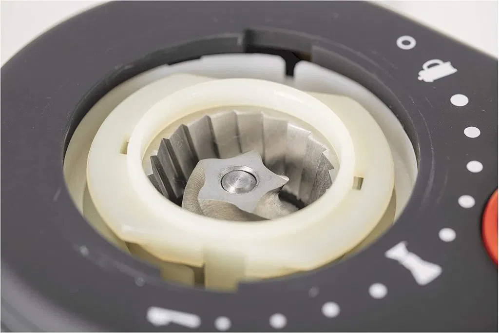 Cái vòng này ép chặt vào lưỡi xay hình nón; tốt hơn đồ zin luôn nha ;). Sau khi ráp hai phần lại, nhớ ép mạnh mấy cái này xuống cối xay nha, vì nó hơi khít.