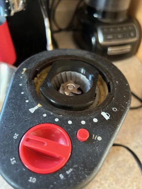 Cái này là vòng thay thế cho phần nhựa dễ gãy trên máy xay cà phê Bodum Bistro. Cái vòng này ép chặt vào lưỡi xay, xài ngon hơn đồ zin. Nhớ ép mạnh xuống khi ráp nha. In 4 lớp vách, độ phân giải 0.2, ruột 20% bằng nhựa PLA đen.