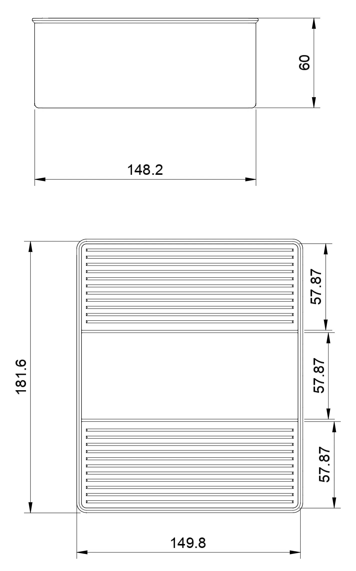 Kích thước hộp khoảng 182x150 mm và cao 60mm. 3 ngăn có chiều rộng 57,87 mm.