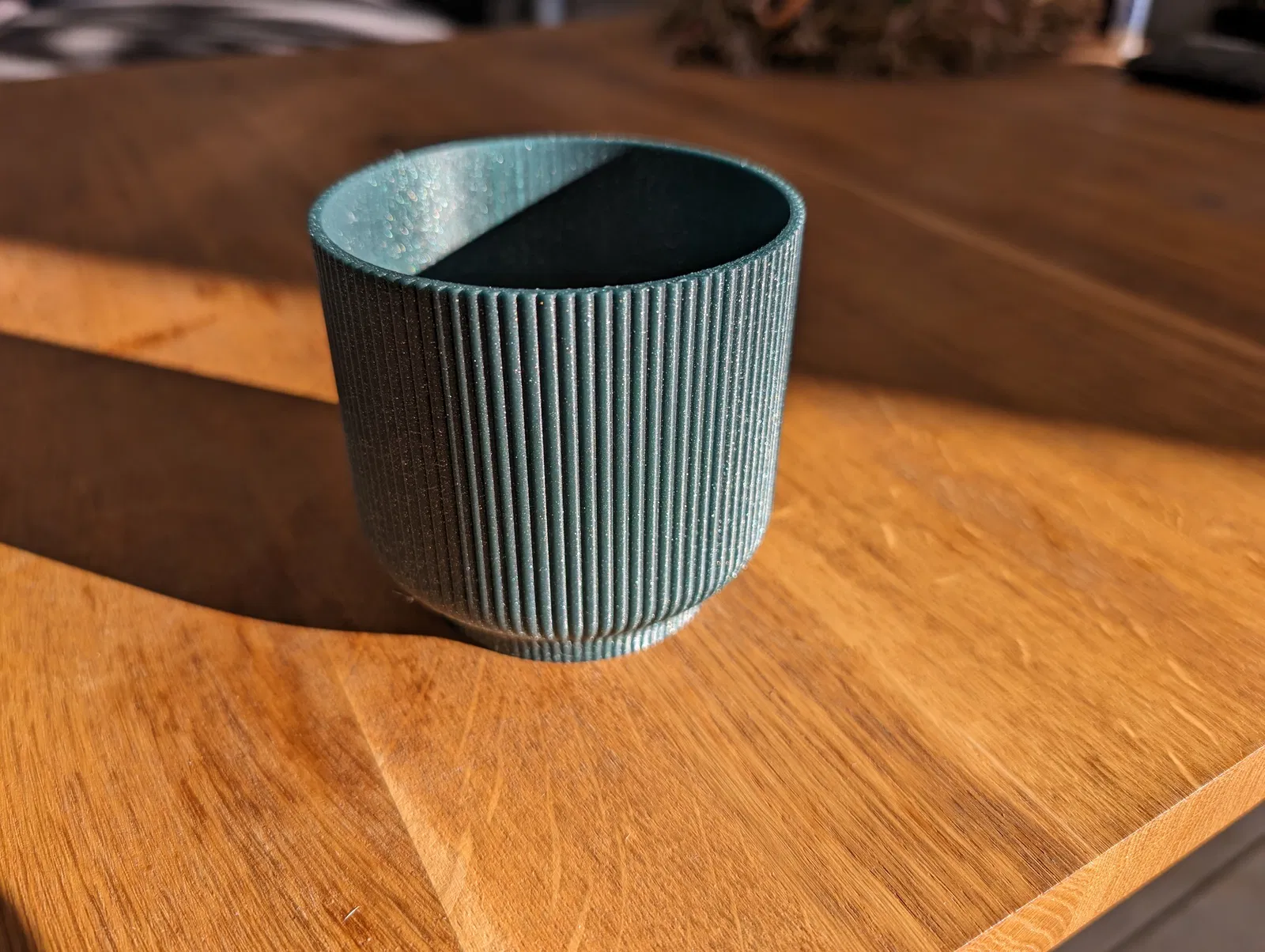 Chậu hoa đơn giản nhưng thanh lịch. Tôi đã in mẫu này bằng nhựa PLA lấp lánh của Bambu Lab. Thiết kế ban đầu cho chiều cao 110mm, có thể thu nhỏ tùy ý.