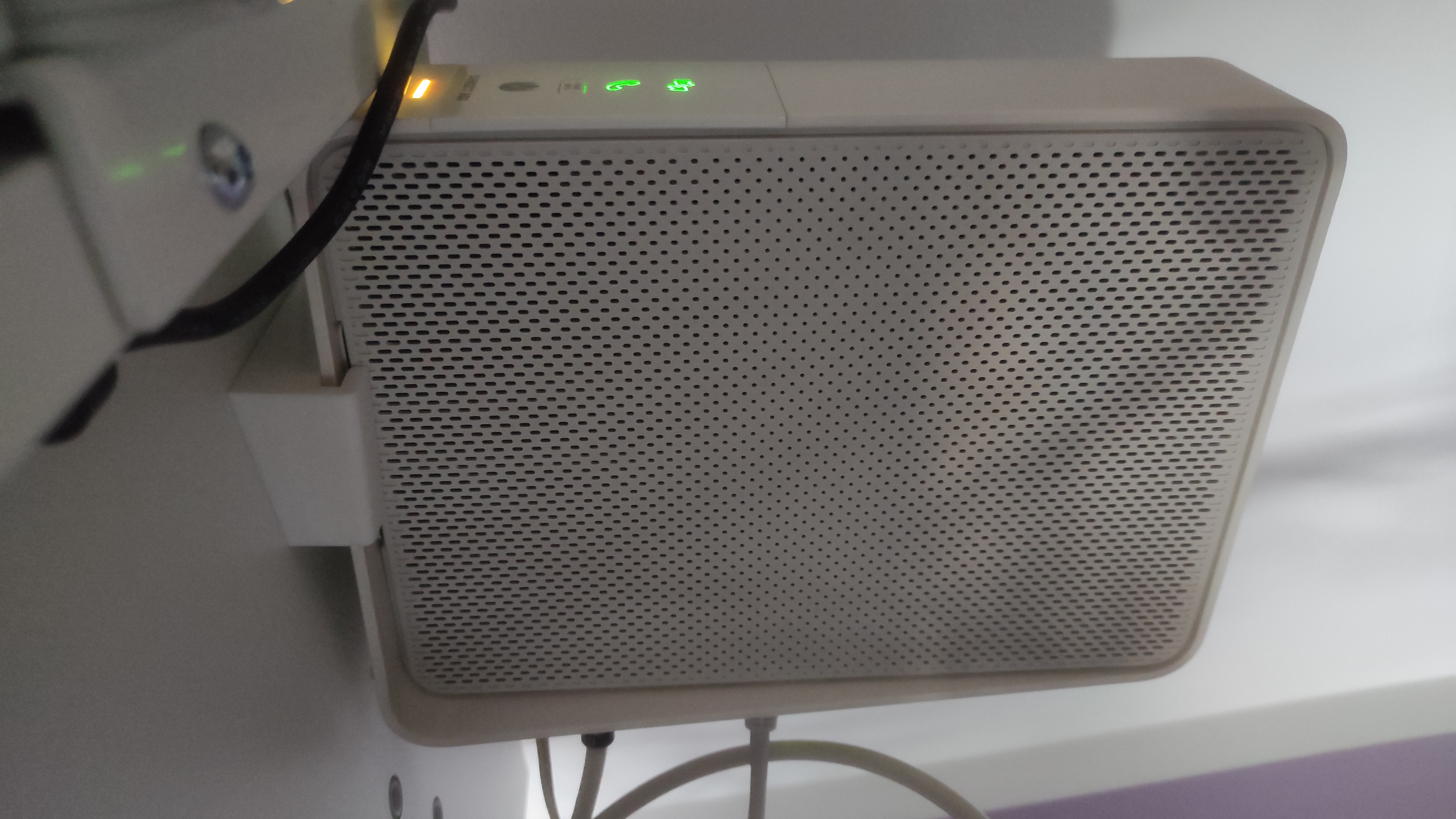 Giá đỡ modem Compal CH7465 (Vodafone) gắn dưới gầm bàn, dùng 2 vít đầu 8mm. Thiết kế tối ưu với infill 20% và không cần supports, giúp bạn sắp xếp gọn gàng.