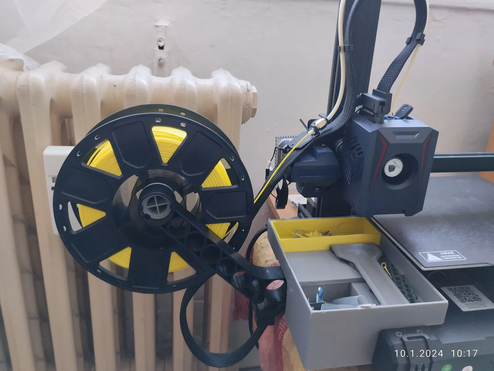 Giá đỡ cuộn dây được tùy chỉnh cho Anycubic Kobra 2 Neo, với trục được rút ngắn lại để phù hợp hơn với không gian của người dùng. Phiên bản này giải quyết vấn đề trục giữ cuộn dây gốc quá dài.