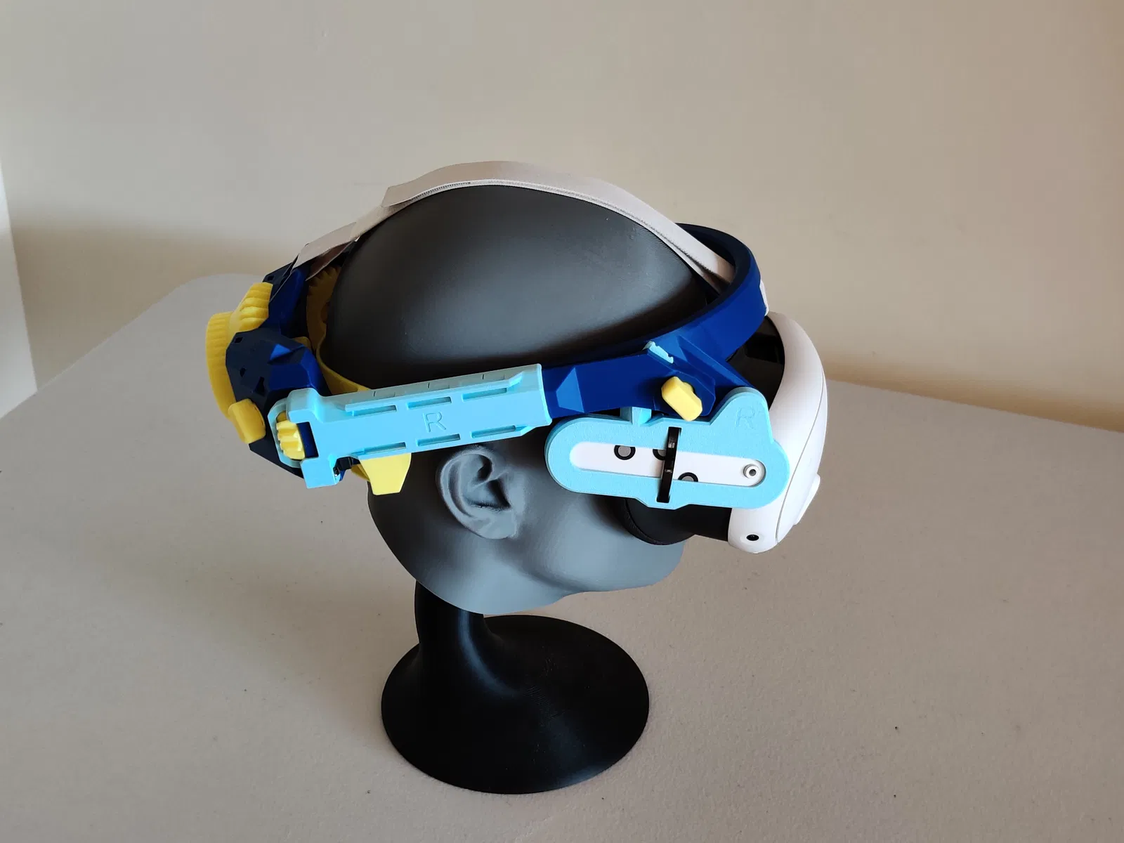 Thay thế dây đeo đầu cho Meta Quest 3. Dây đeo này thoải mái hơn dây Elite Strap, cho phép điều chỉnh góc nhìn và phân bổ trọng lượng tốt hơn. Hướng dẫn in và lắp ráp chi tiết, bao gồm các tùy chọn như Chắn Tóc và Cầu Nối Pin.