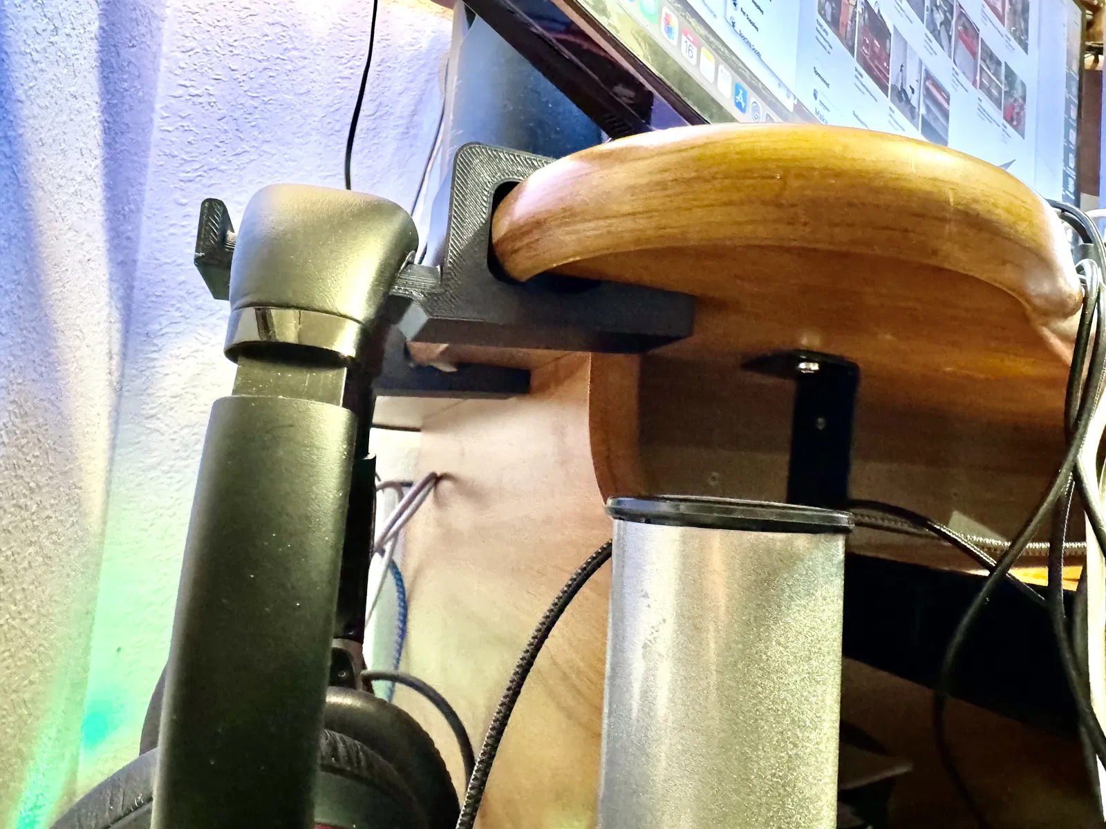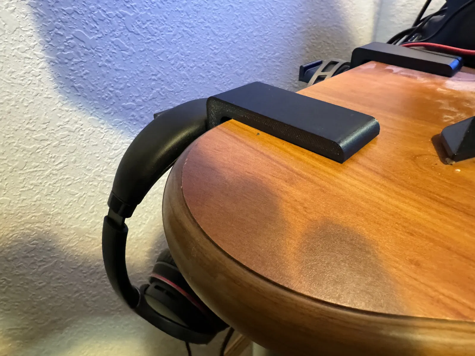 Bàn làm việc của tôi có cạnh bo tròn xuống dưới mặt bàn khoảng 3mm. Điều này có nghĩa là loại kẹp giữ tai nghe tiêu chuẩn sẽ không dùng được. Tôi đã thiết kế cái này để có thể luồn qua phần dưới của cạnh bàn và giữ chặt giá đỡ tai nghe vào bàn làm việc mà không cần bất kỳ cơ chế kẹp nào. In bằng OPXL2H với tính năng input shaper ở tốc độ .32LH.