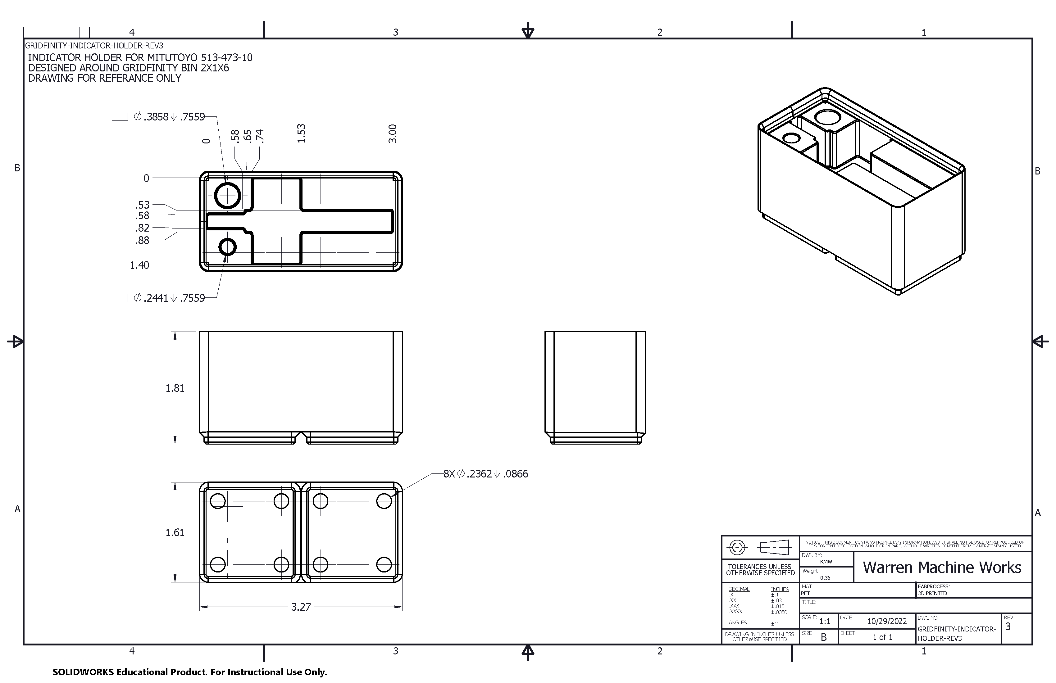 Đế giữ chuyên dụng cho các loại đồng hồ so Mitutoyo 513-473-10 hoặc các loại có kích thước tương tự. Thiết kế tương thích với đế Gridfinity của ZackFreedman, giúp bạn sắp xếp không gian làm việc hiệu quả hơn.
