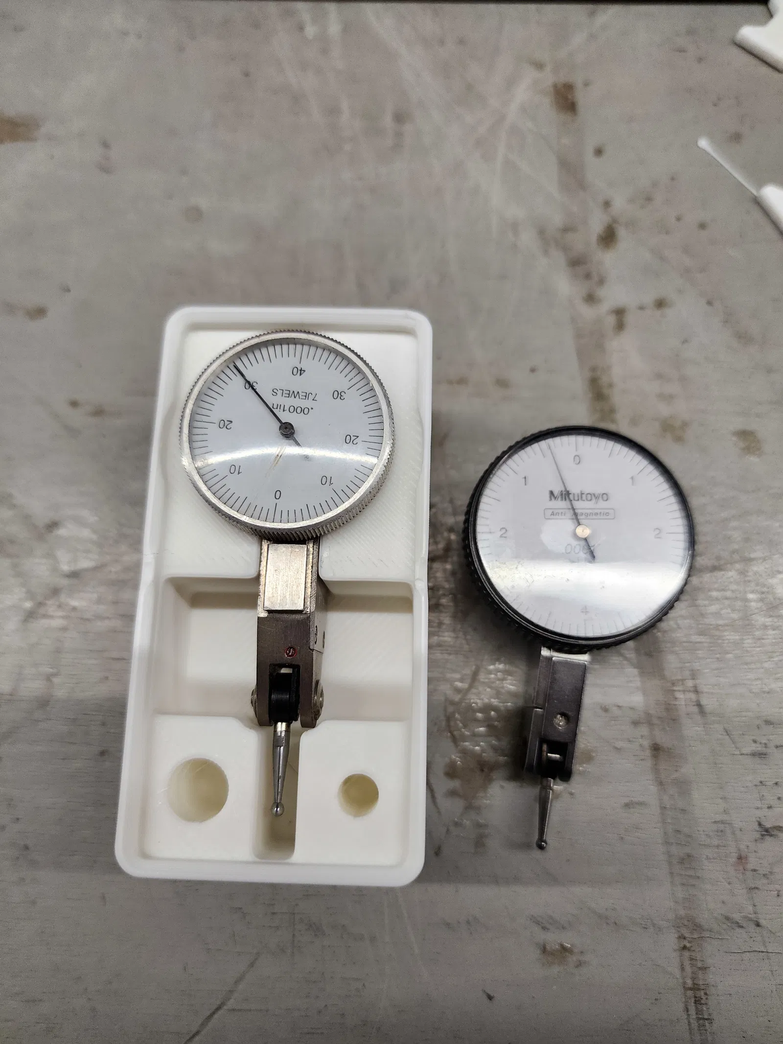 Hộp đựng chỉ báo Gridfinity kích thước 2x1, được tùy chỉnh để vừa vặn với các loại đồng hồ so chân lớn của Mitu và các loại đồng hồ đo ren giá rẻ của Trung Quốc. Một giải pháp lưu trữ hiệu quả cho các dụng cụ đo của bạn.