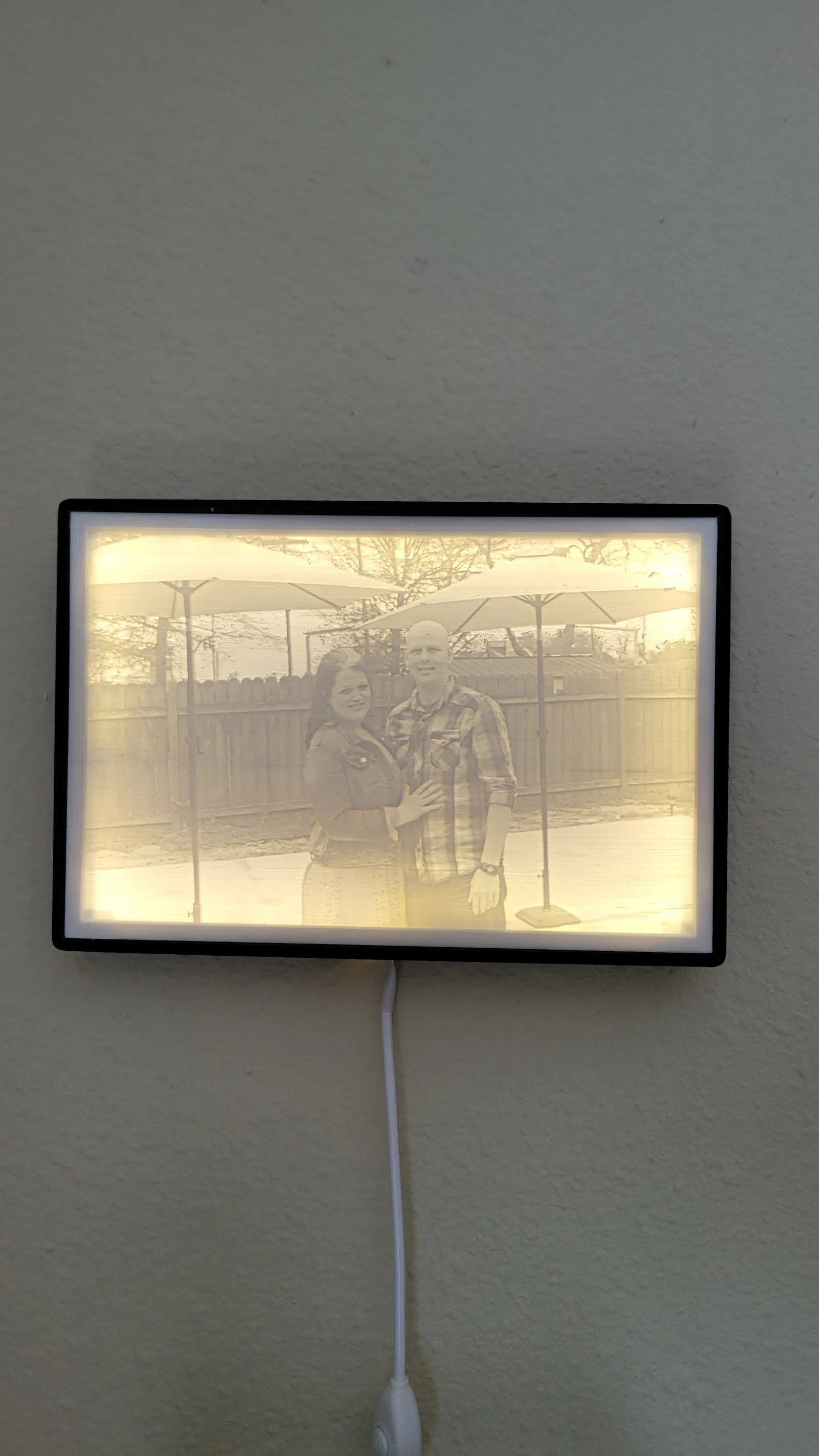 Đây là cái khung mà tui tự thiết kế để lồng tấm lithophane tui làm hồi đám cưới của hai vợ chồng cách đây 8 năm. Cái này là quà tui tặng bà xã đó.
