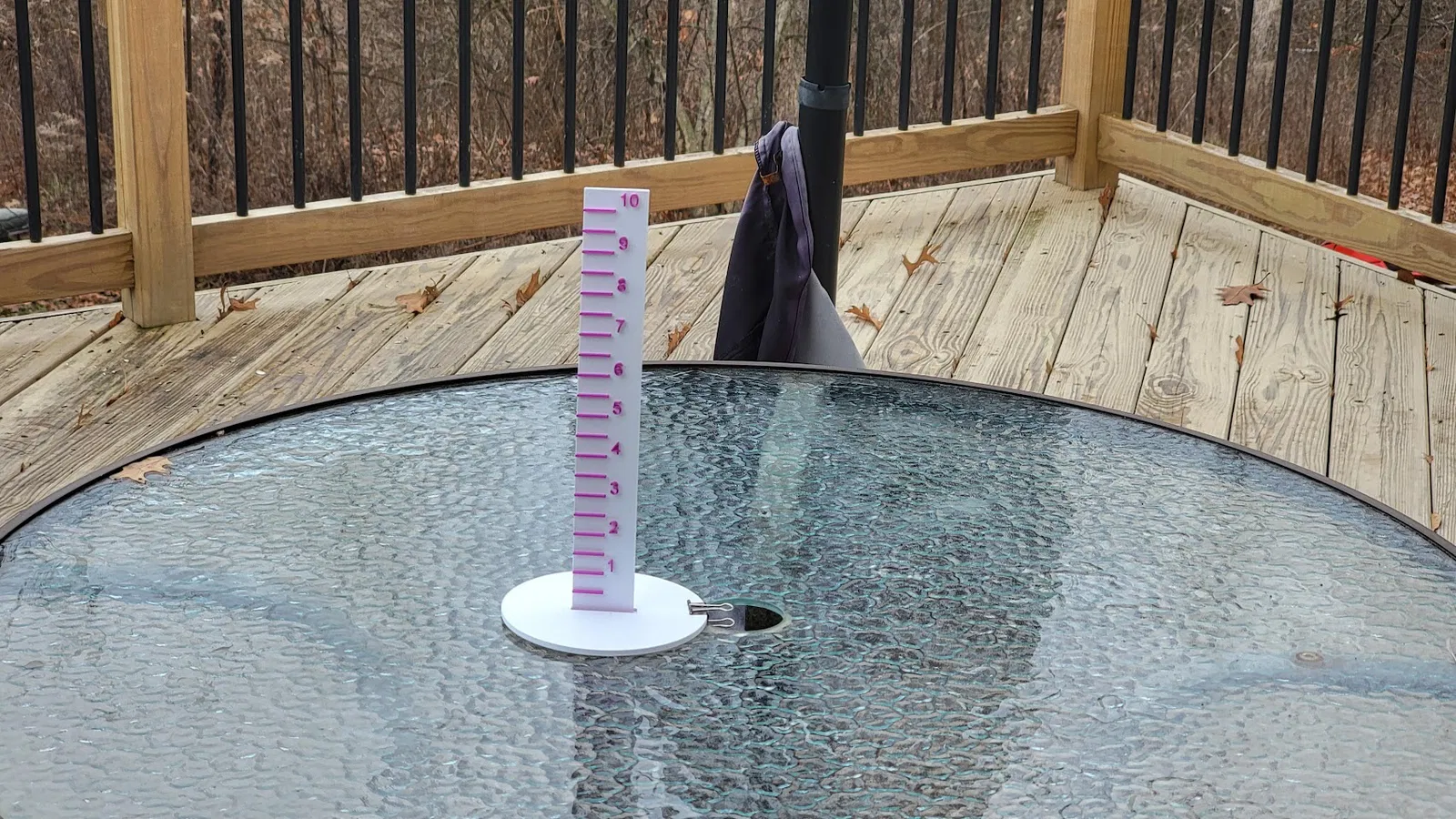 Chuẩn bị đón tuyết, tôi đã chế tạo một cái thước đo với độ hiển thị cao, rất hữu ích để đo lượng tuyết rơi. Sản phẩm này được làm cẩn thận và cố định chắc chắn trên bàn để tiện sử dụng.