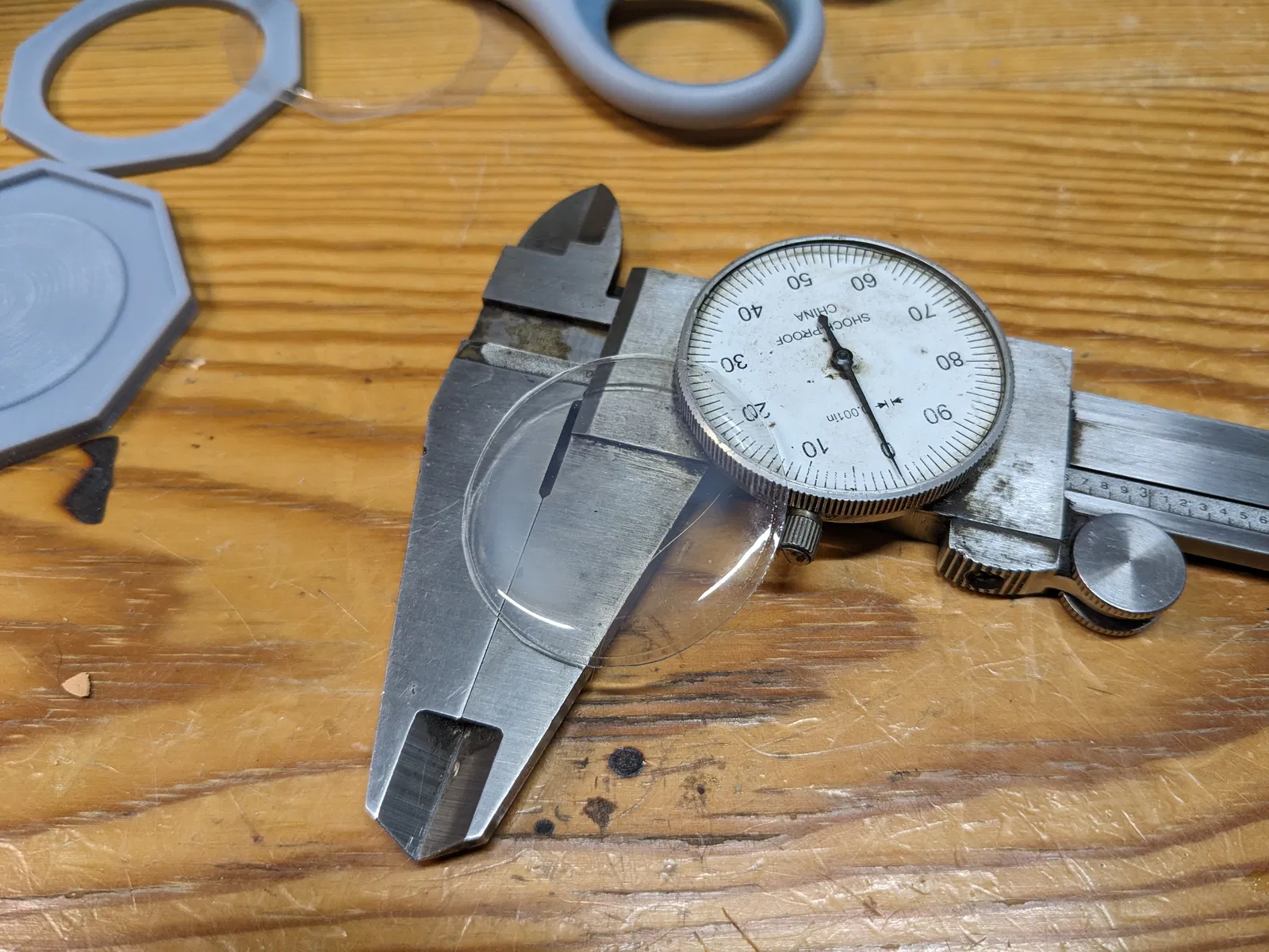 Bản in này là minh chứng cho phương pháp chế tạo thấu kính thay thế (nắp đậy mặt số trong suốt) cho thước cặp cơ khí có mặt số (xem ảnh). Tôi đã đính kèm các tệp in mà tôi đã sử dụng, nhưng cần lưu ý rằng các bộ phận này cần được tùy chỉnh cho kích thước thấu kính cụ thể yêu cầu, cũng như độ dày của vật liệu làm thấu kính (tấm nhựa) được sử dụng.