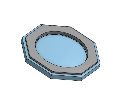 Bản in này về cơ bản là một khuôn ép được sử dụng để ép một miếng tấm nhựa trong thành hình dạng thấu kính vòm có "vành". Đối với tấm nhựa, tôi đã sử dụng một miếng tấm PVC phẳng được tận dụng từ một số bao bì thực phẩm; tấm nhựa có độ dày 0,44mm.