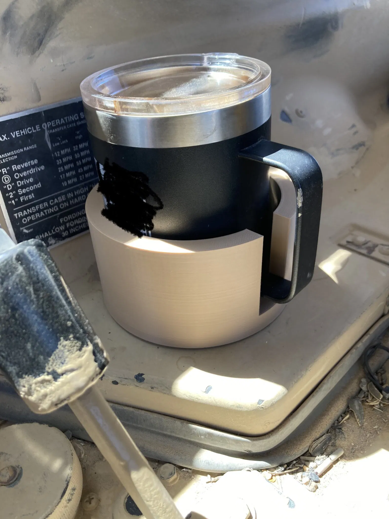Tôi cần một giá đỡ ổn định cho chai nước Hydroflask 32oz và cốc cà phê Yeti của mình khi lái xe HMMWV. Nó được bắt vít trực tiếp vào xe bằng vít kim loại tấm. Cho đến nay, nó hoạt động rất tốt.