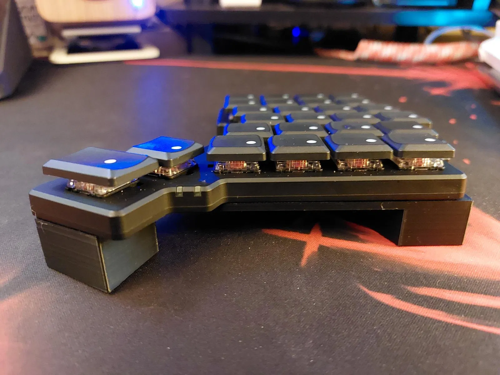 Model này tạo ra một chân đỡ lớn, chắc chắn để sử dụng với bàn phím ZSA Voyager cho góc nghiêng cao hơn. Nó được thiết kế để ôm khít vào chân đế nam châm đi kèm với Voyager, mang lại nền tảng chắc chắn và ổn định hơn so với chân đỡ mà chính ZSA cung cấp.
