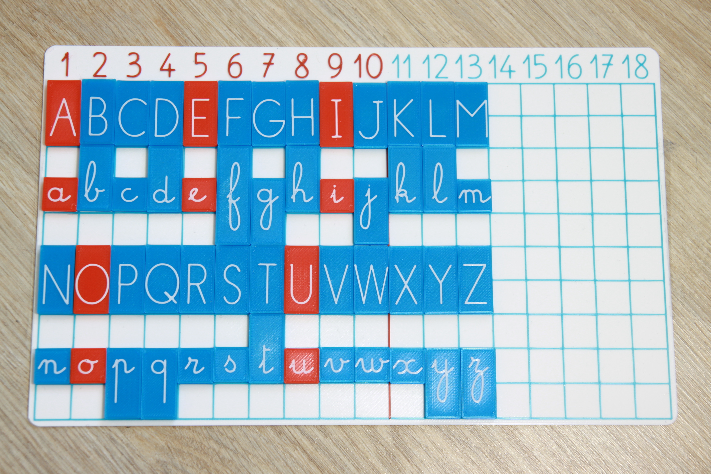 Bảng học Montessori với các mảnh ghép kiểu "Blokus", có thể tùy chỉnh mọi thứ.